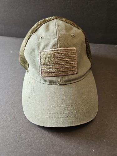 - Highland Tactical Hat Cap Olive Green US Flag Mesh Logo Fitted OSFM