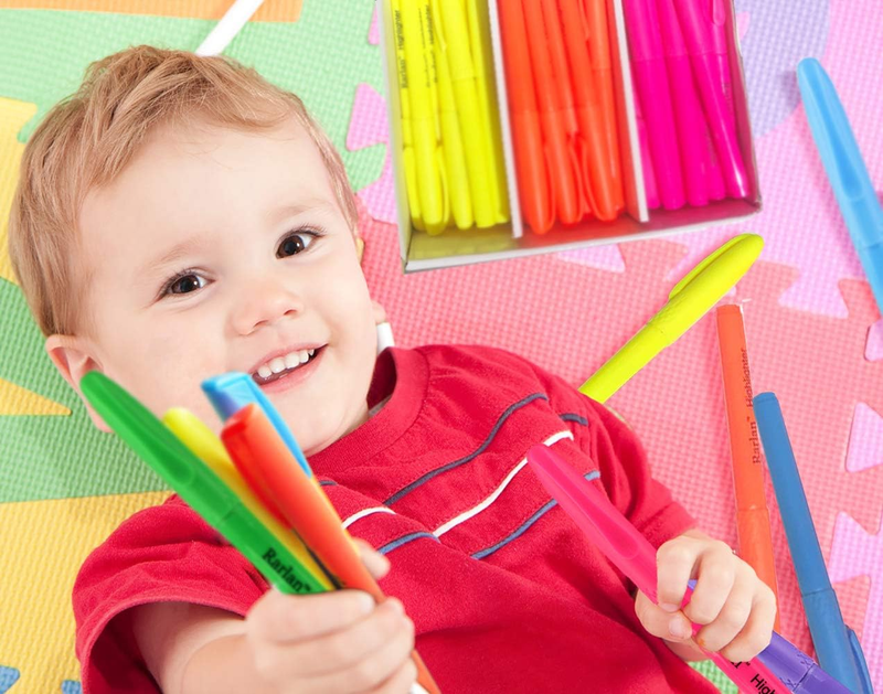 6 fluorescent colors in yellow, pink, blue, green, orange, and purple