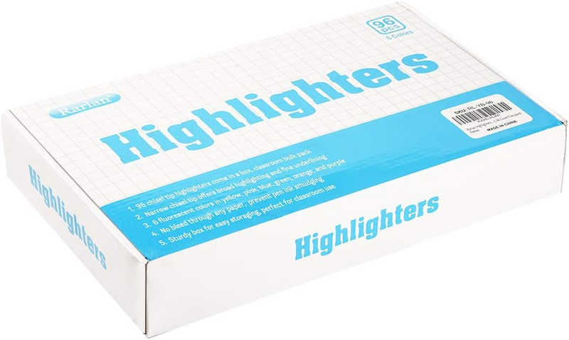 - Highlighters, Chisel Tip, Assorted Fluorescent, 96 Count Bulk Pack