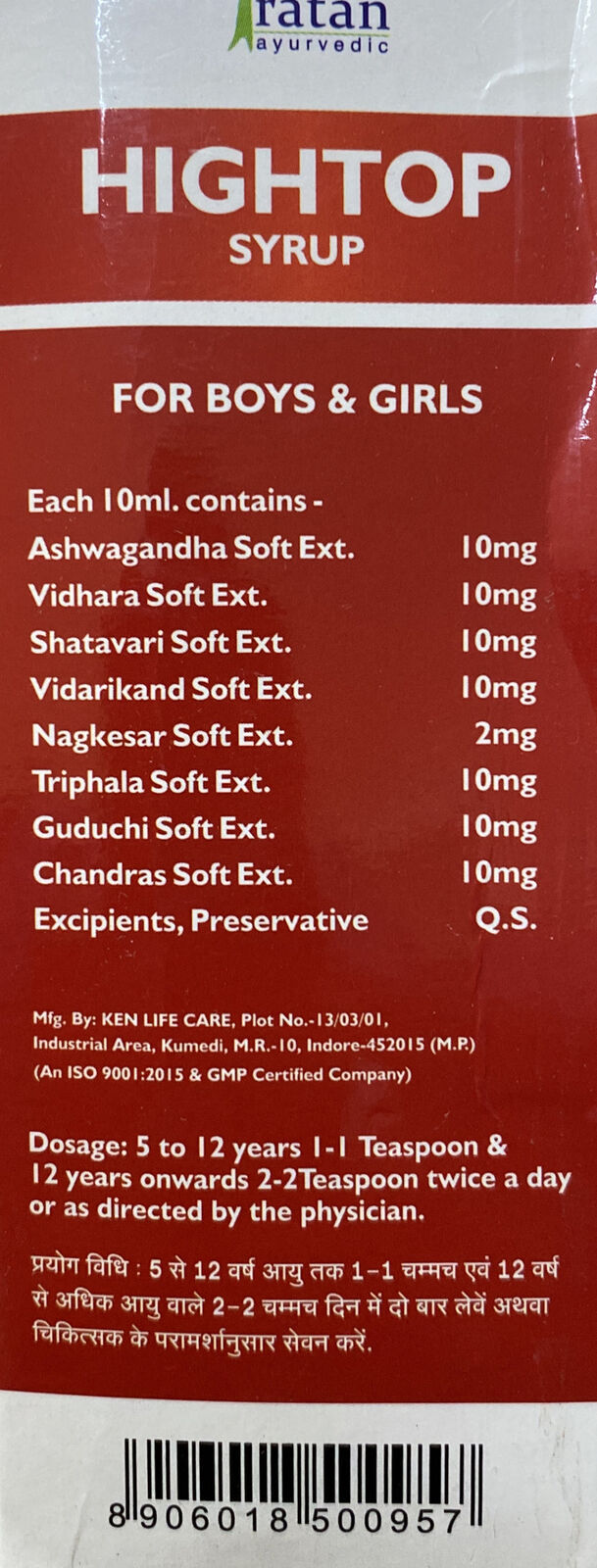 For Juniors in the age group between 5 and 12 years – 1 Ratan’s ‘Hightop’ Syrup teaspoon in the morning and 1 in the night.