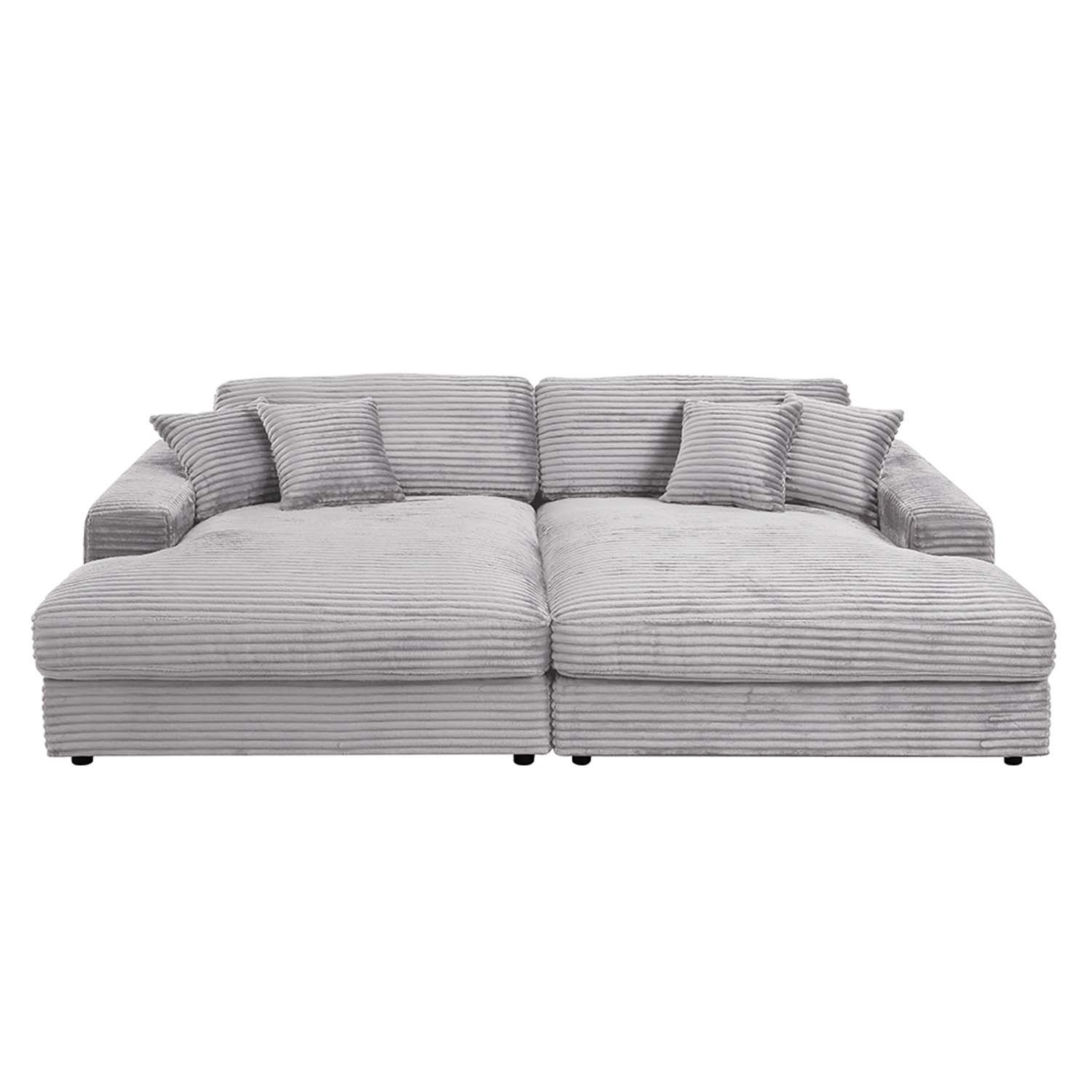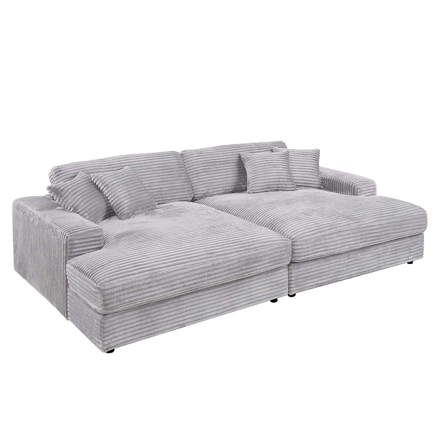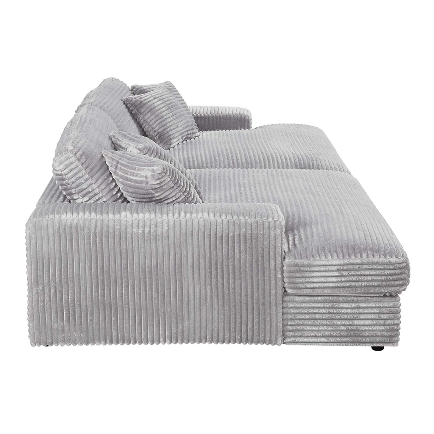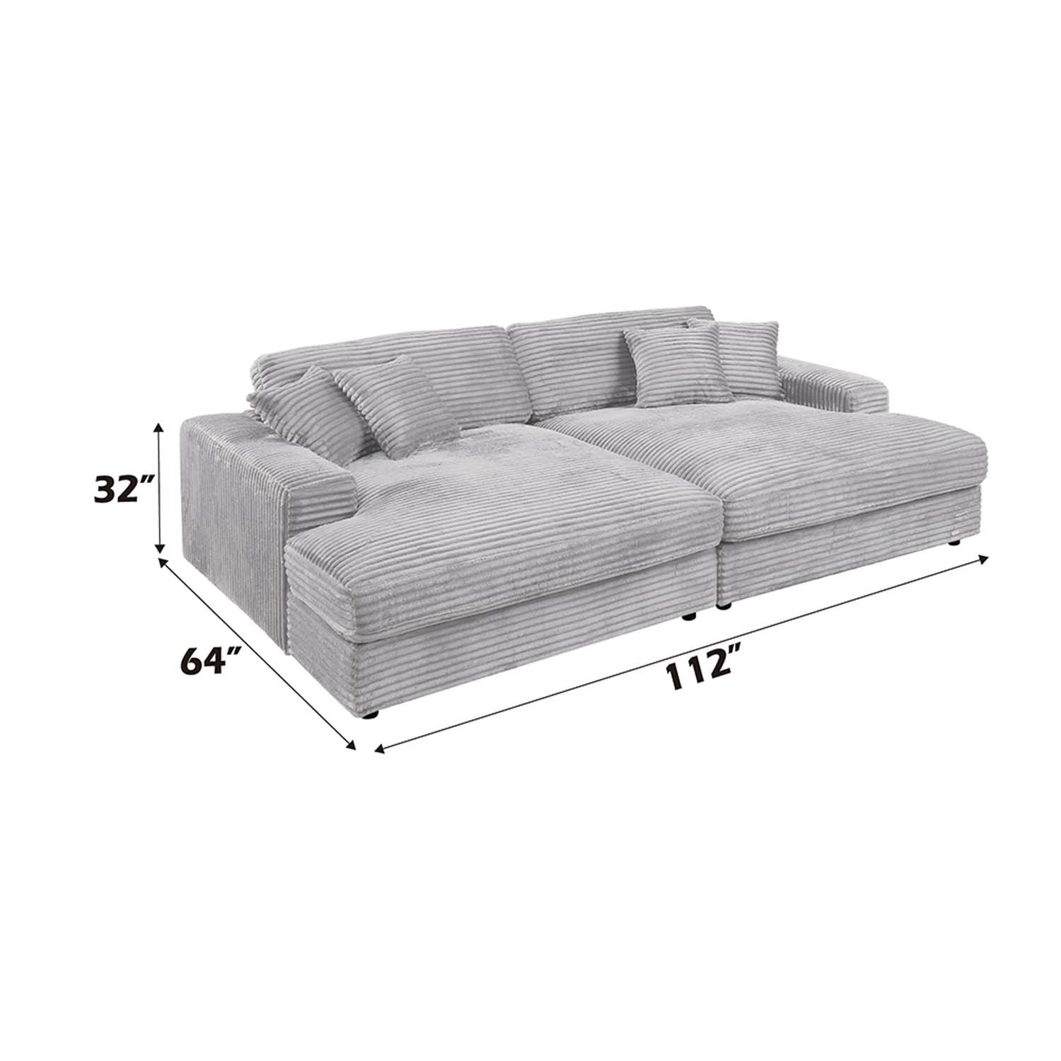 - Hilde 112" Sectional Sofa w/4 Pillows, Light Gray Corduroy
