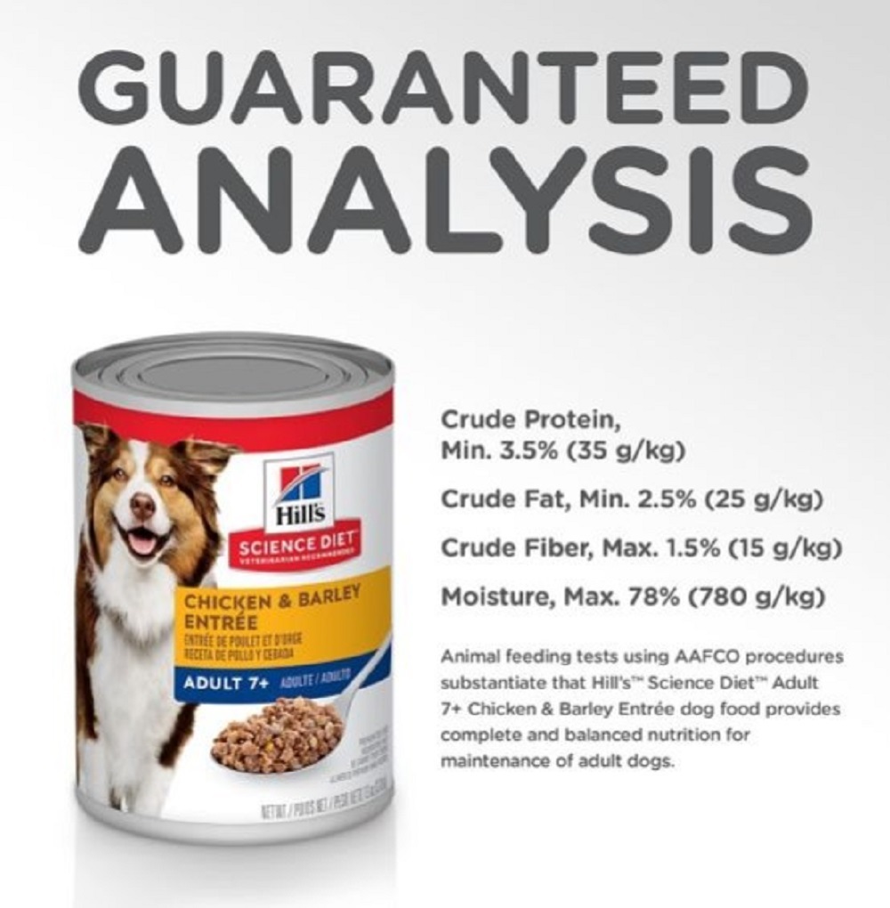 This sale transaction is for Hill's Science Diet Adult 7+ Chicken and Barley Chunks Wet Dog Food, 13 oz. - 1 Can Include exactly what is pictured