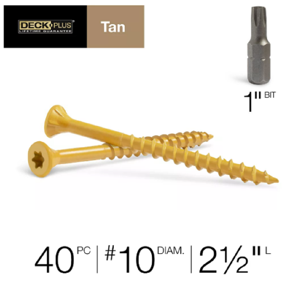 - Hillman 42593 Deck Plus Tan Deck Screws (#10 x 2-1/2in.), 40 Pc