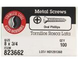 Hillman 8 in. x 3/4 in. L Phillips Oval Head Stainless Steel Sheet Metal Screws 100 1 pk