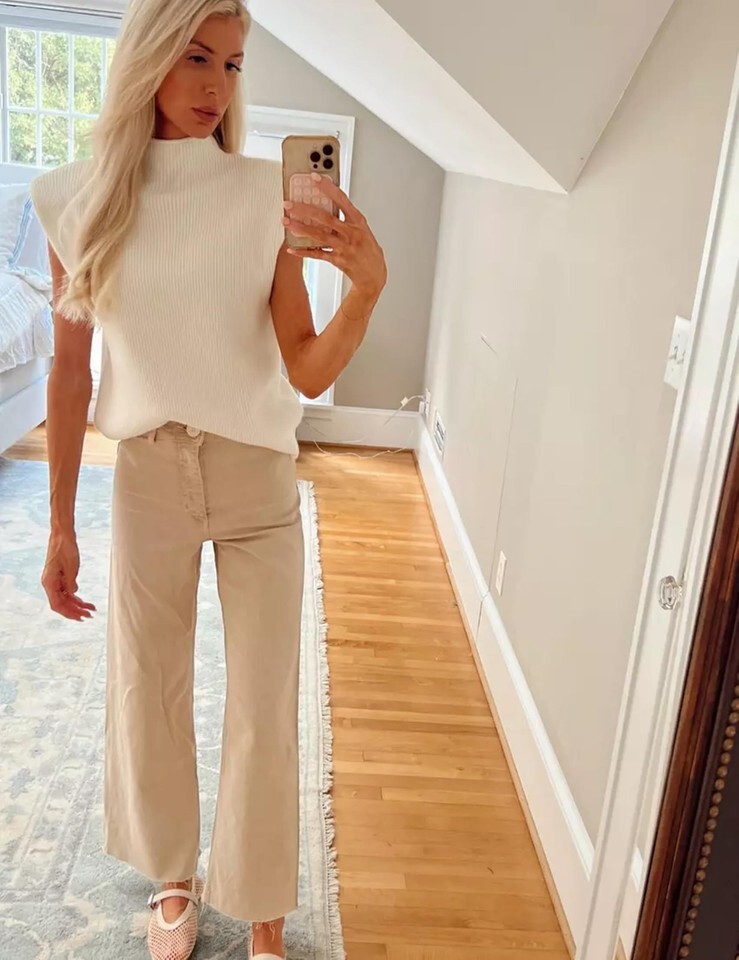 Funnel neck cap sleeve ribbed sweater a fall transition outfit, styled with shorts and heels, easy outfit summer capsule, re-learning how to get dressed for the office, sweater dresses for women 2023 trendy