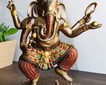 Hindu Supreme God Dancing Nritya Ganesha On Lotus Statue 8"H Patron Of The Arts
