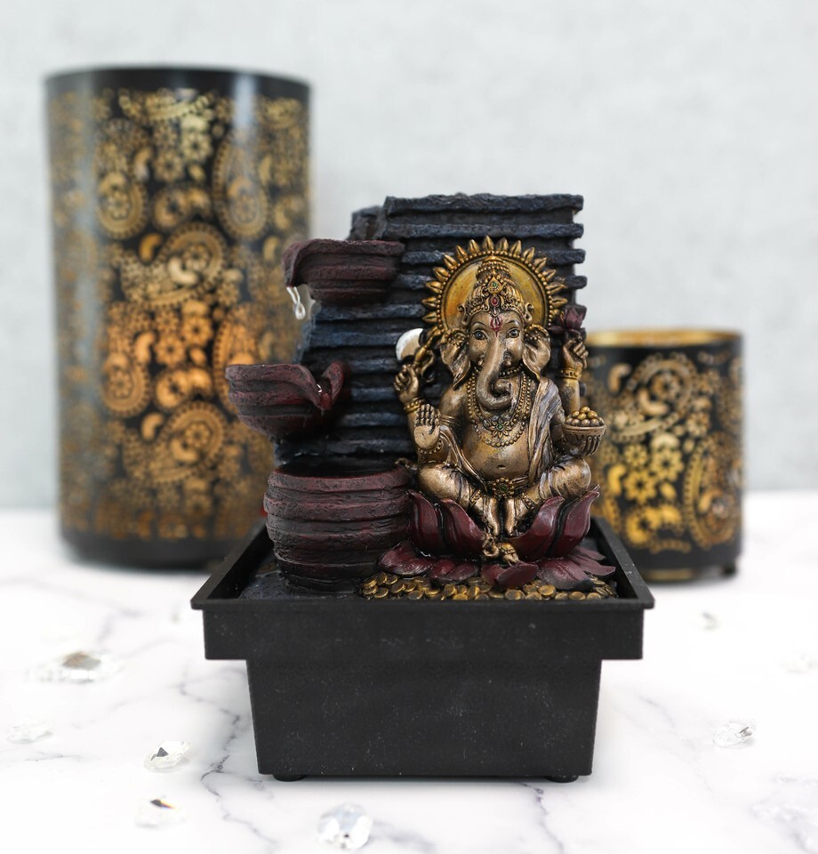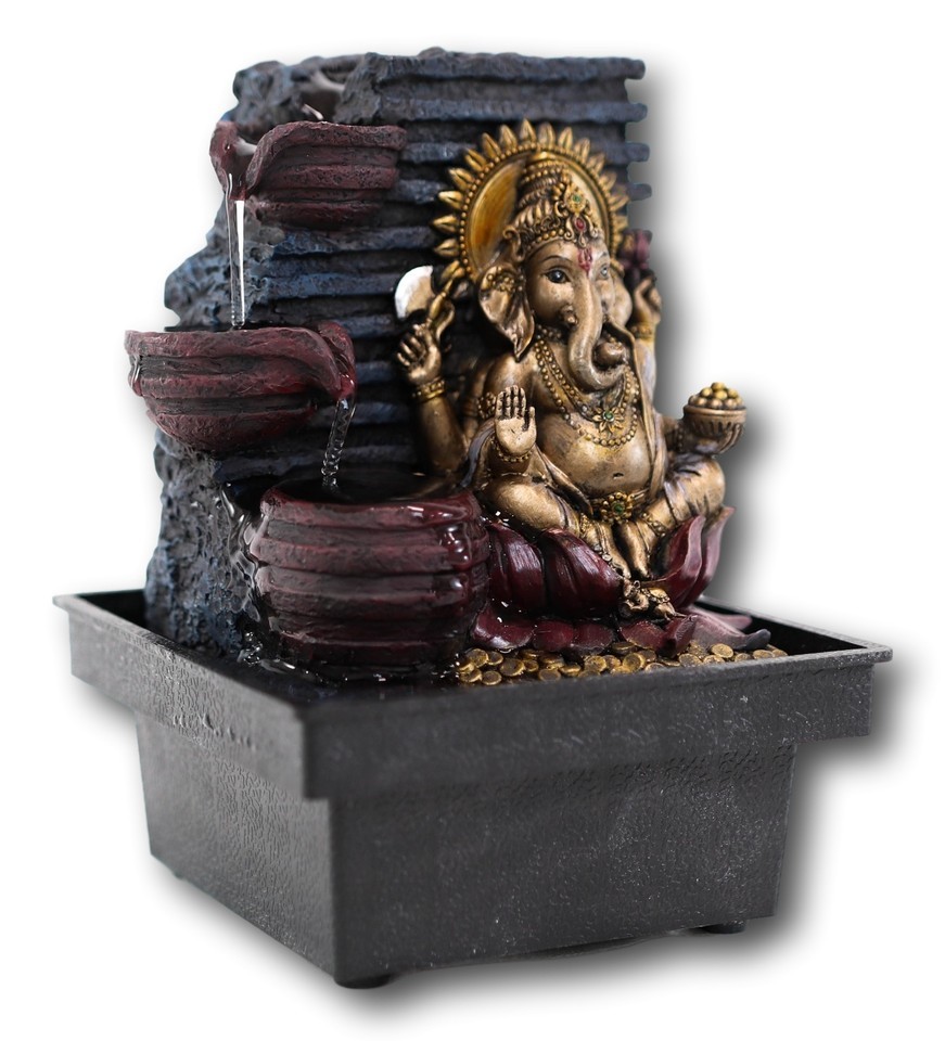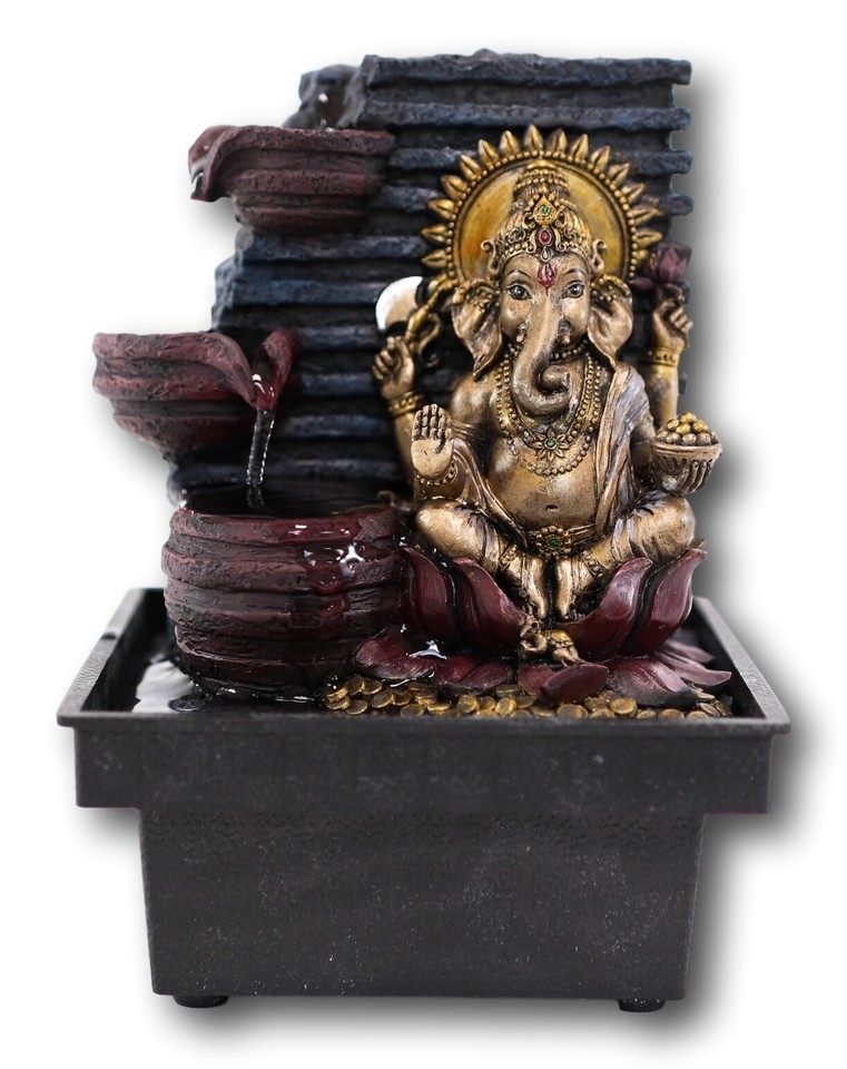 - Hindu Vastu Supreme Elephant God Ganesha Desktop 3 Step Water Fountain Statue