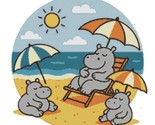 Hippos sleep on the beach under an umbrella - Cross Stitch Pattern PDF - Instant Download.