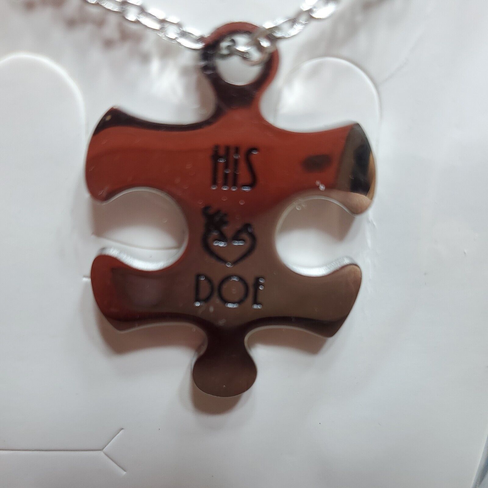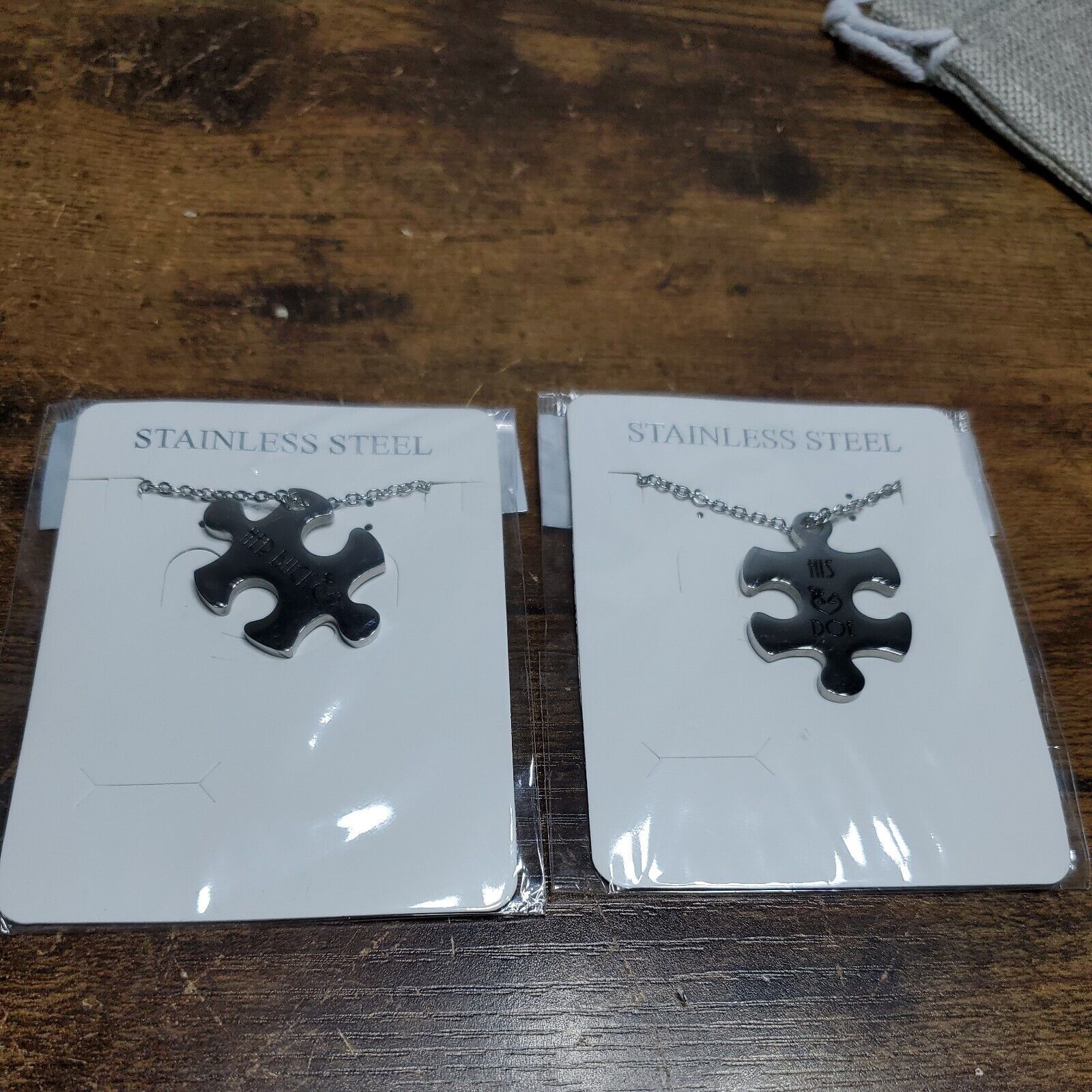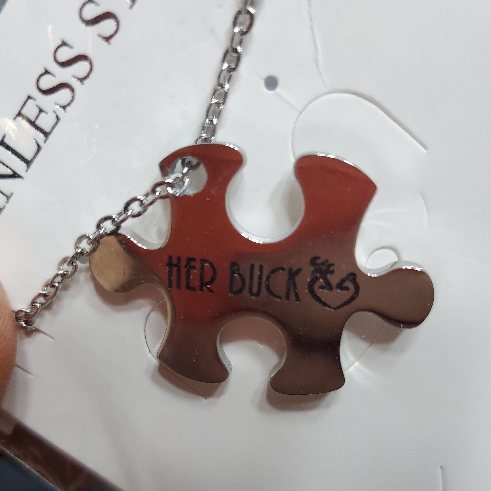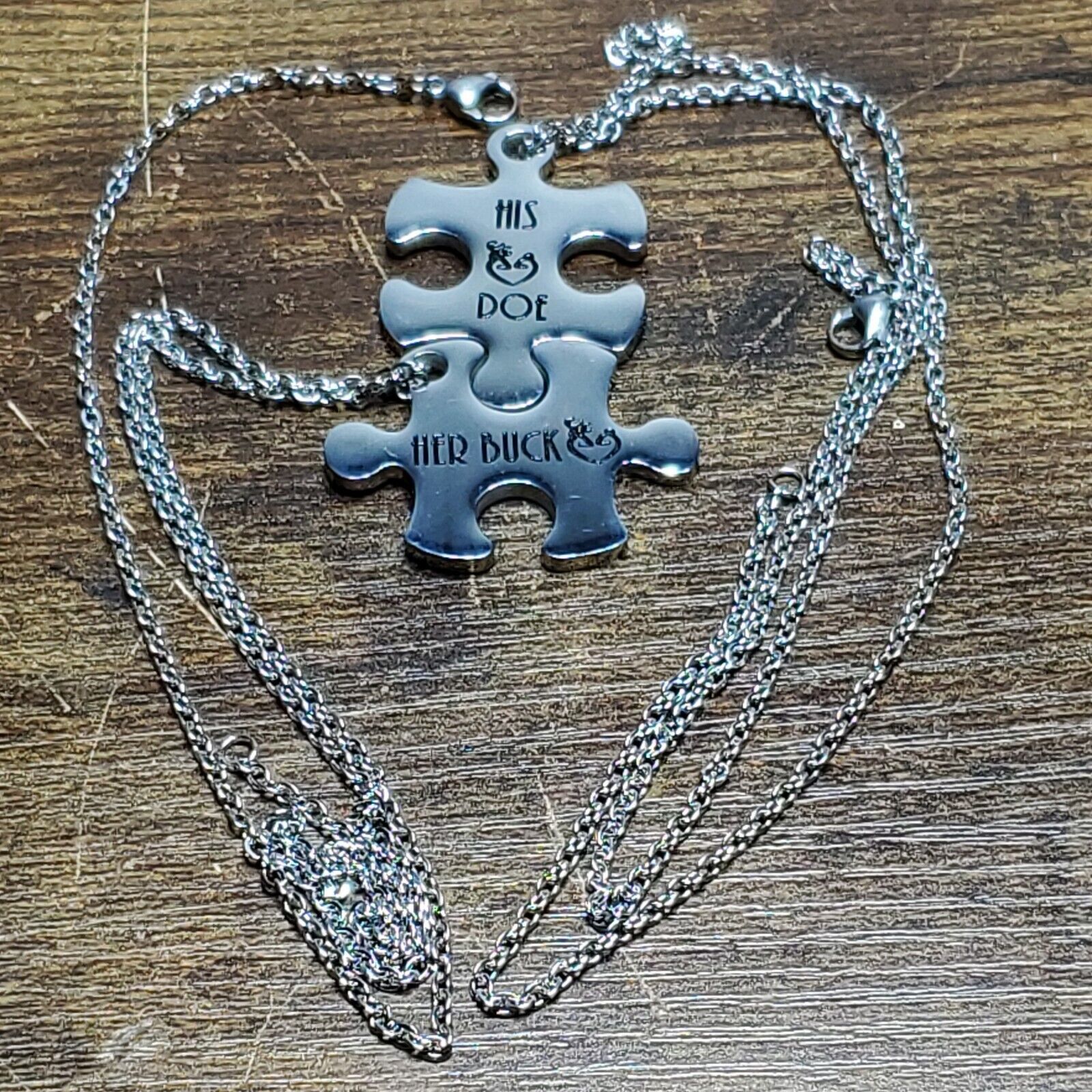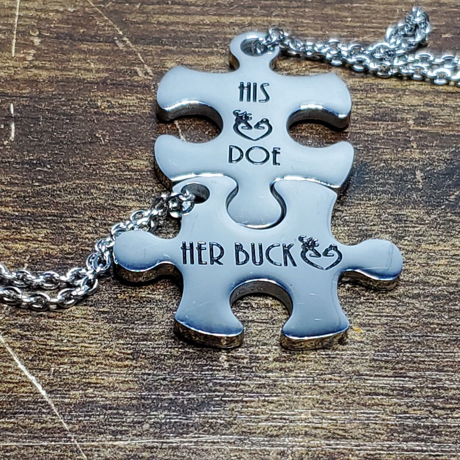 His and Hers Stainless Steel Love Heart Puzzle doe buck Couple Necklaces 1 Pair.