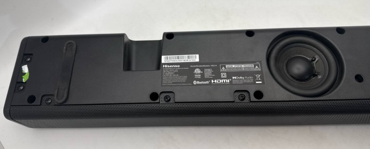 Item includes: Please note: This item includes 1x Hisense HS214 Sound Bar Only - As Pictured. Remote control and power cord are not included. No other accessories are included.