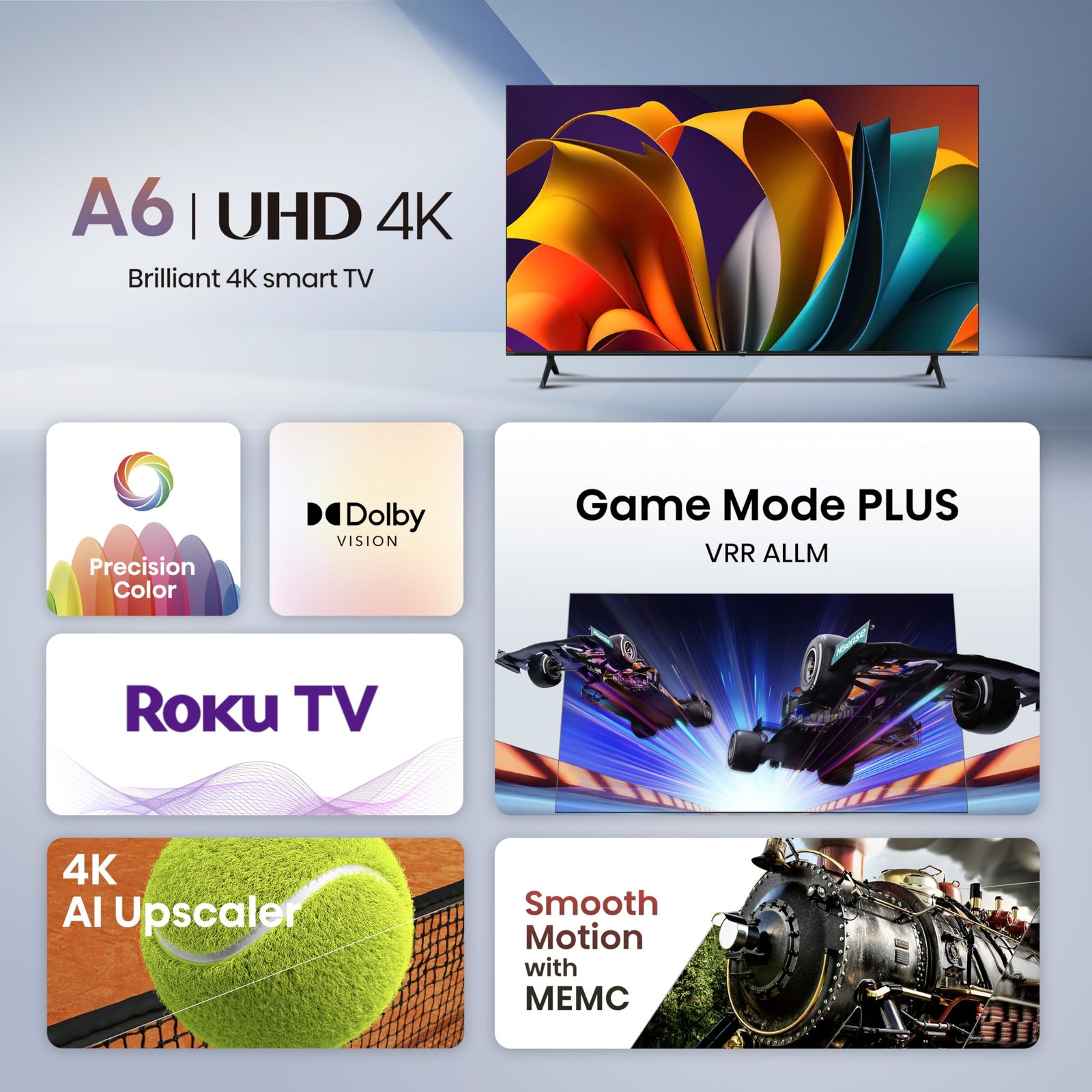 - Hisense 85-Inch Class A6 Series 4K UHD Smart Roku TV (85A6NR, 2024 Model) - Dolb