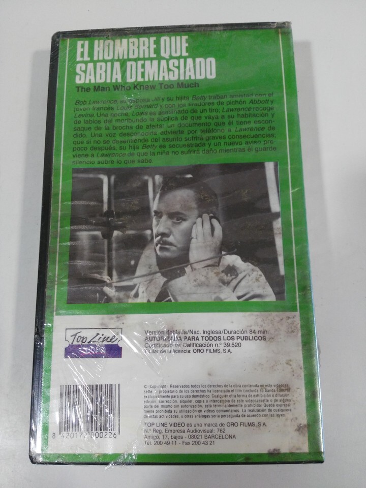 HITCHCOCK EL HOMBREQUE JE SAVAIS TROP BANDE VHS ESPAGNOL NOUVEAU NOUVEAU ENTIEREMENT NEUF ET SCELLE, IMPOSSIBLE DE TROUVER !!!