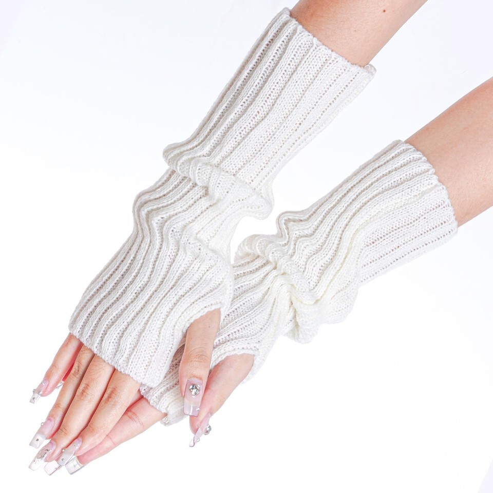 - Hmxpls Knitted Kawaii Arm Warmers Wrist Warmers Women White