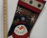Hobby Lobby Plaid Pattern Snowman Embroidered Christmas Hanging Stocking 19 in