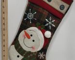 Hobby Lobby Plaid Pattern Snowman Embroidered Christmas Hanging Stocking 21 in