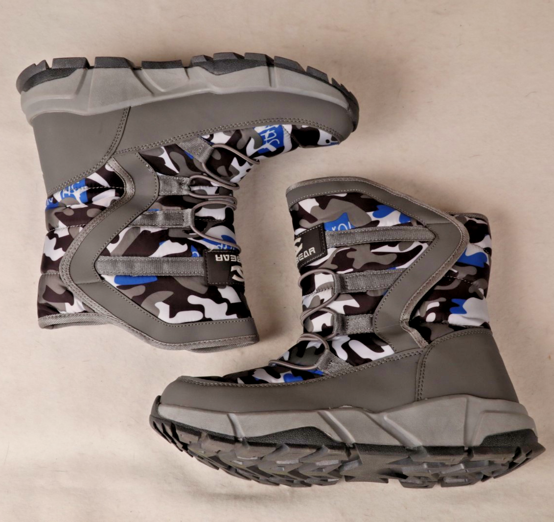 Hobibear Kids Youth Waterproof Outdoor Blue Camo Snow Boots Winter US 9.5 EU 40