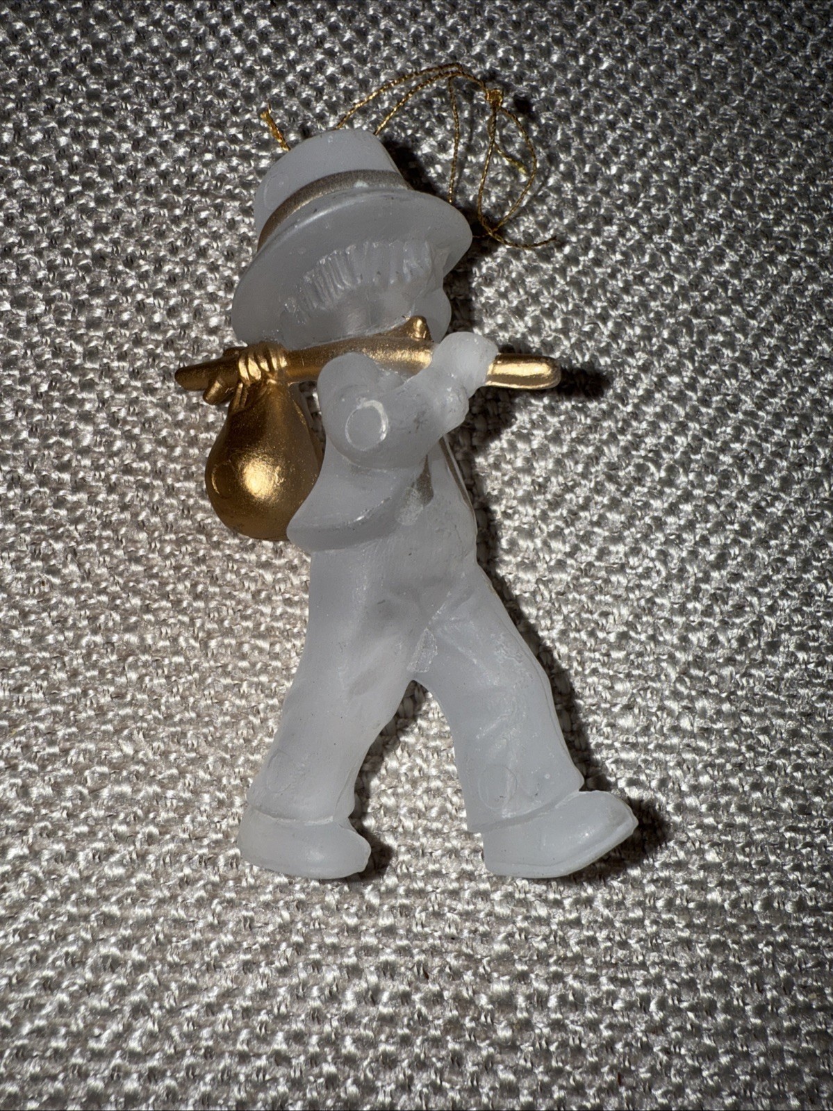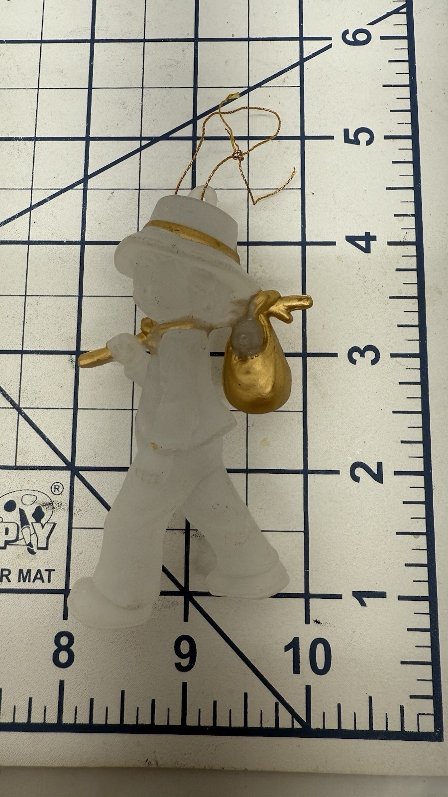 The product is a 3" holiday ornament designed specifically for kids, featuring a hobo kid hiking bag theme. This Christmas ornament is perfect for decorating a tree with a festive and playful touch. The ornament is a fun addition to holiday decor, capturing the spirit of Christmas with a unique and charming design. It is sure to bring joy to kids and add a touch of whimsy to the holiday season.