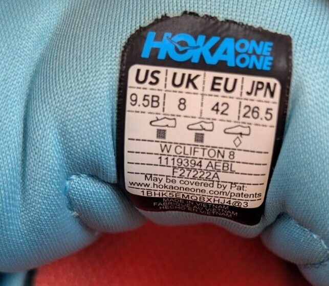 - Hoka One One Sneaker Womens 9.5B Clifton 8 Teal Aqua 1119394 AEBL Running Shoes