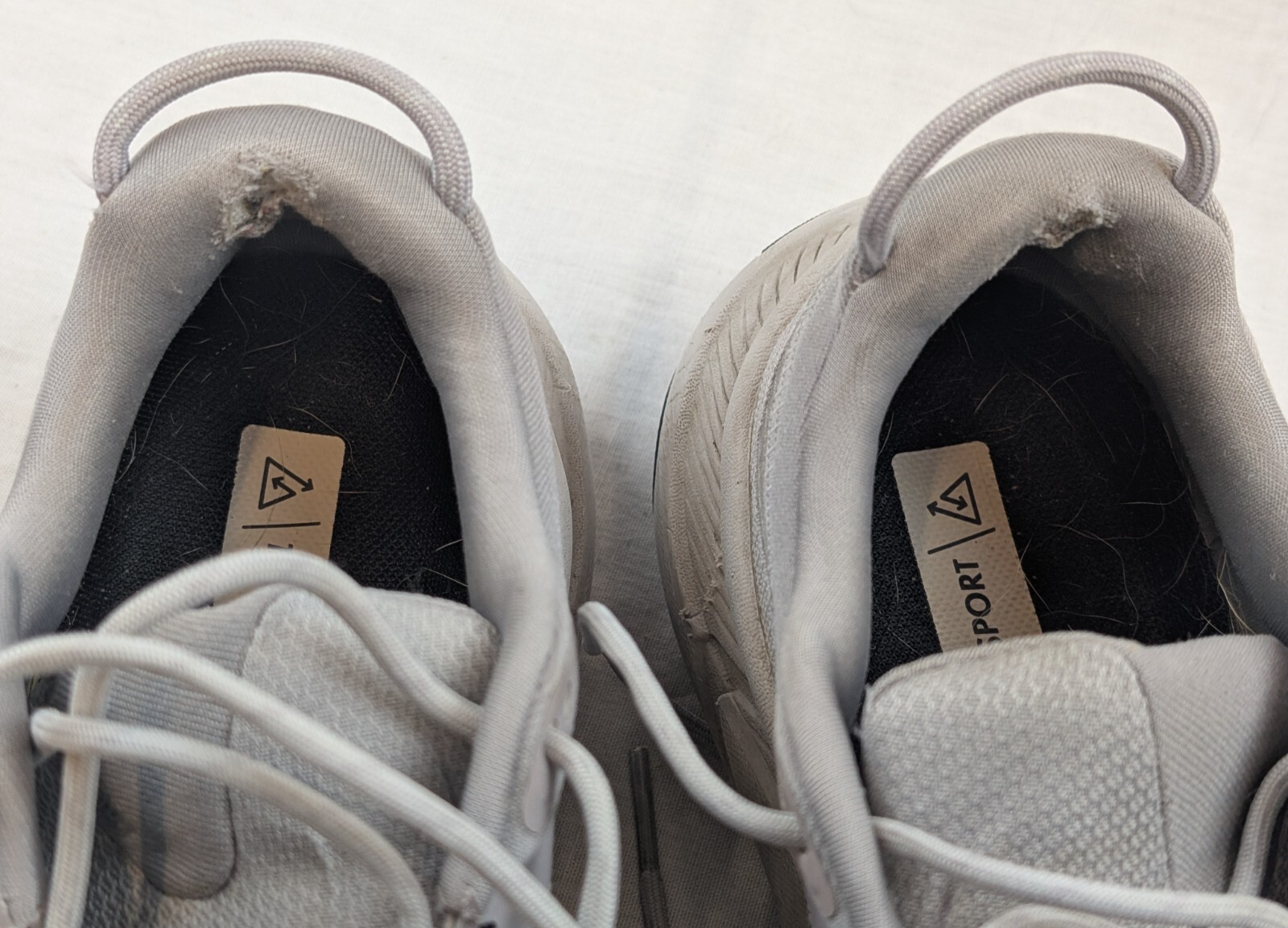 The shoes are in excellent condition with plenty of life left in the soles. There is some minor fabric wearing out at the heel--see pics