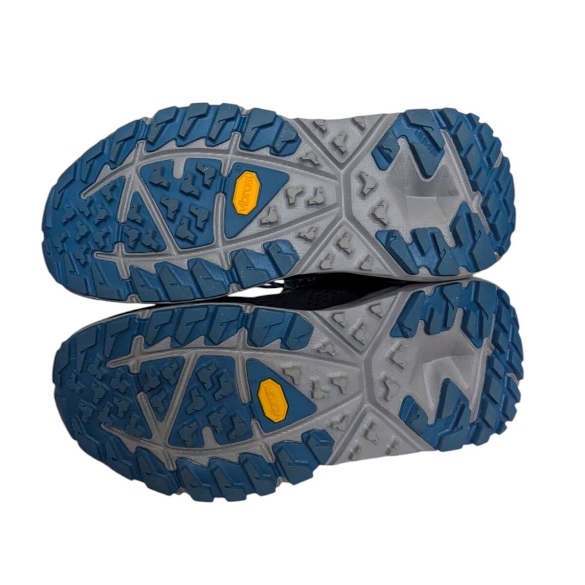 These Hoka Kaha GTX hiking boots combine lightweight comfort with Gore-Tex waterproofing for ultimate trail performance. With durable Vibram soles and a secure lace-up design, they provide excellent traction and stability for outdoor adventures. Stylish navy blue and gray tones enhance their versatile look, making them a reliable choice for exploring rugged terrains.