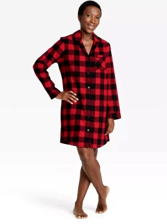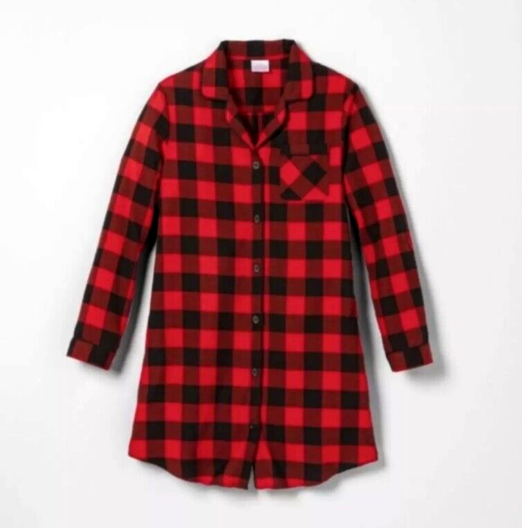 - Holiday Buffalo Check Plaid Flannel Pajama NightGown women's sz S Wondershop Red