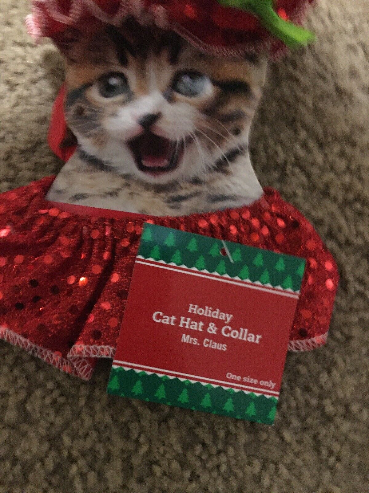 - Holiday Christmas Cat Hat And Collar/ Mrs.Claus/1102