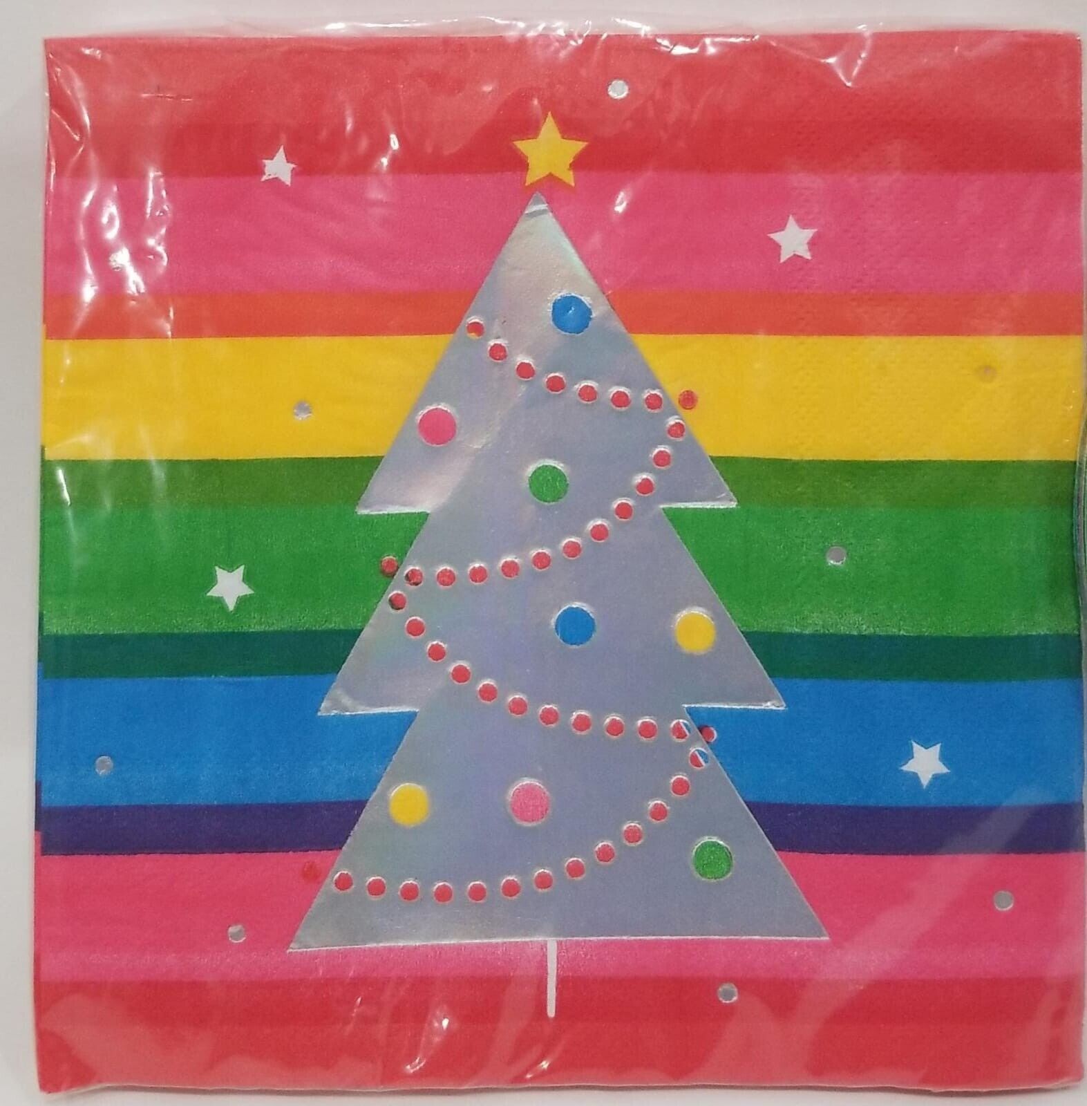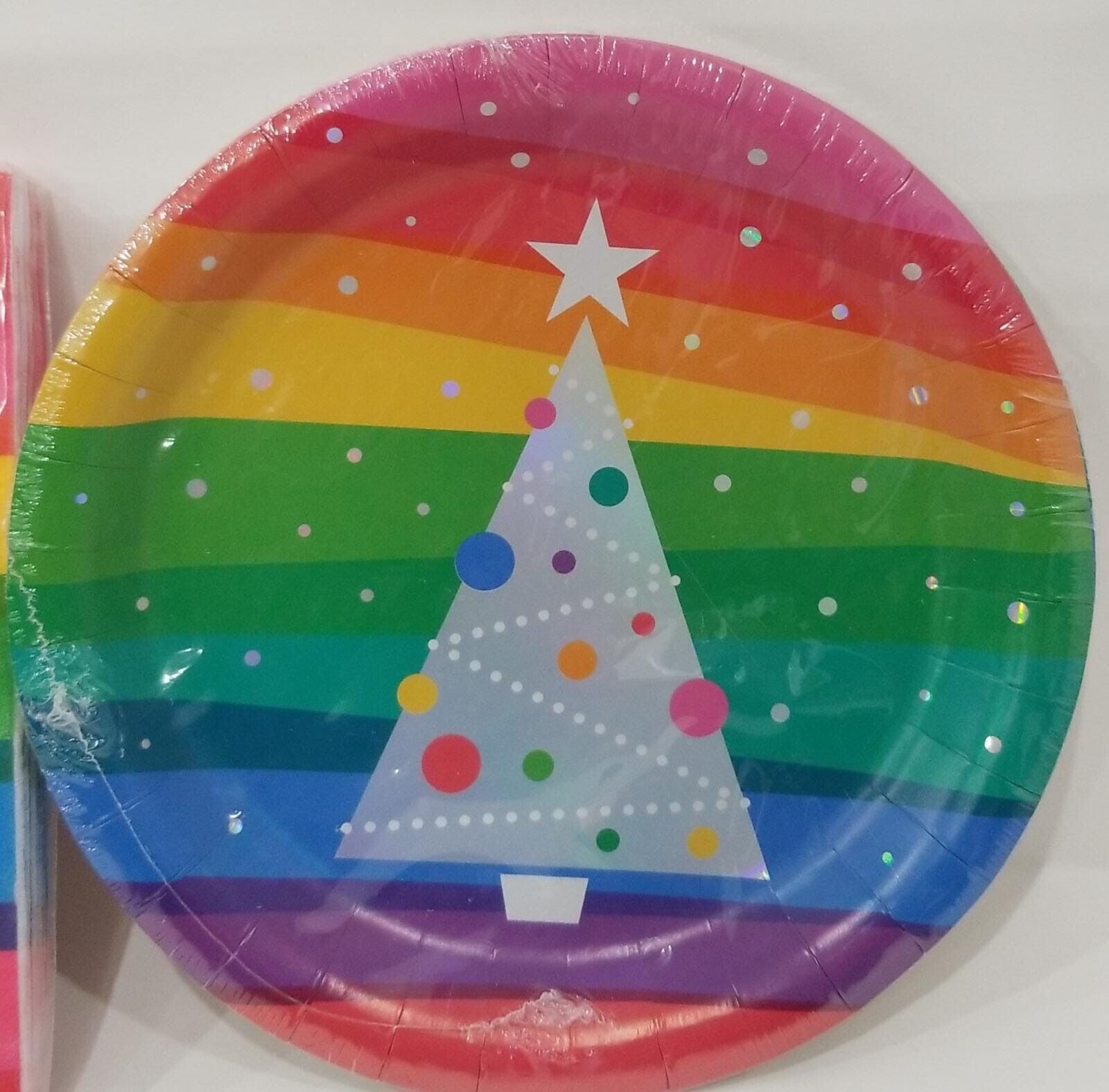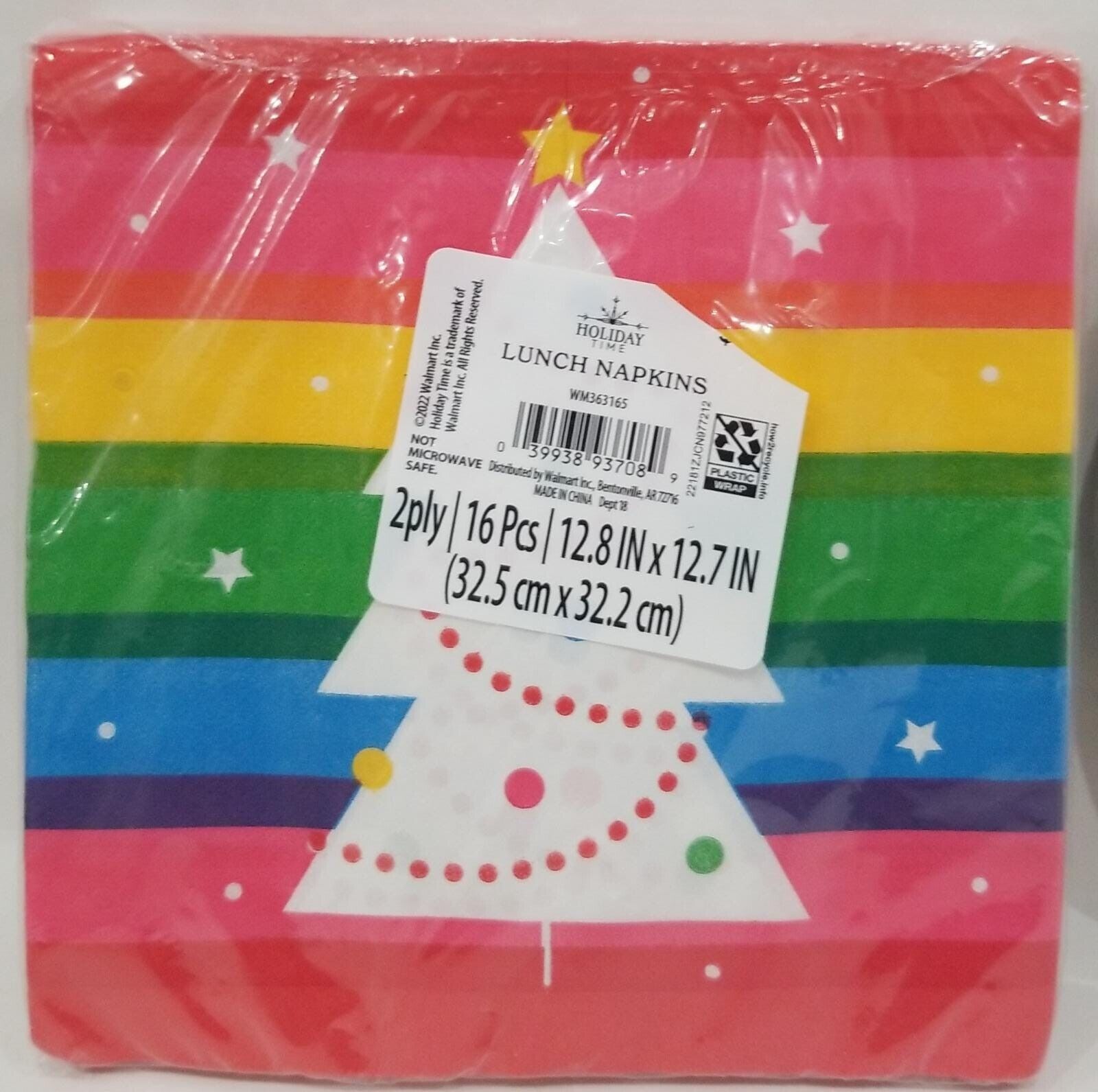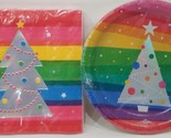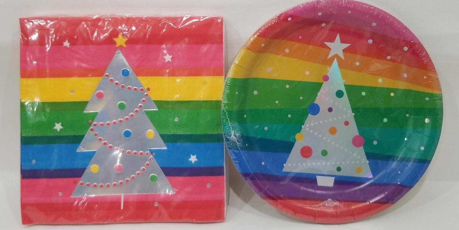 Holiday Time 10 Piece Lunch Plates 16 Piece Lunch Napkins With Rainbow Stripes And Christmas Tree