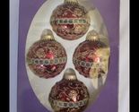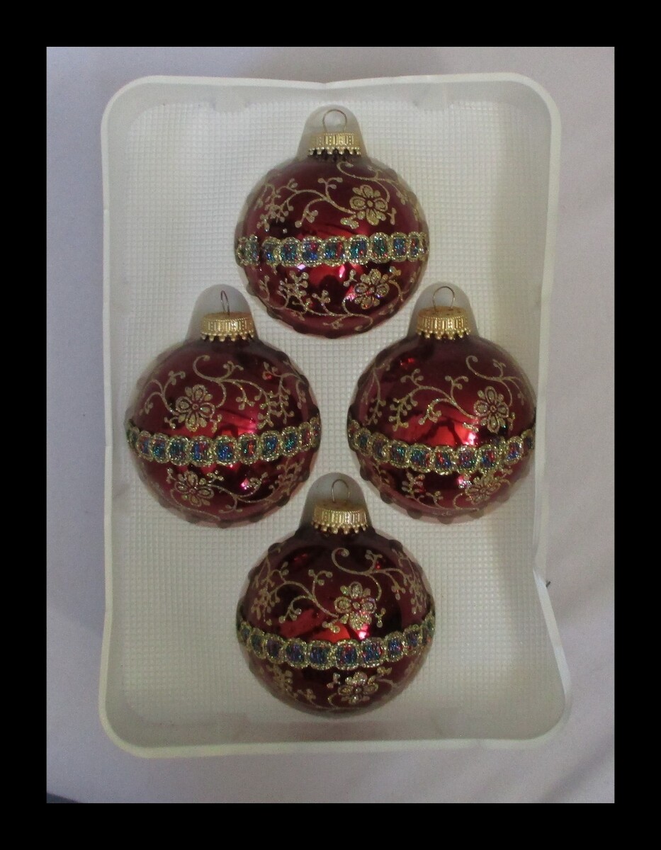 Holiday Time 4 Glass Ornaments Burgandy Gold. Very good condition and in original box. Same or next day ship.