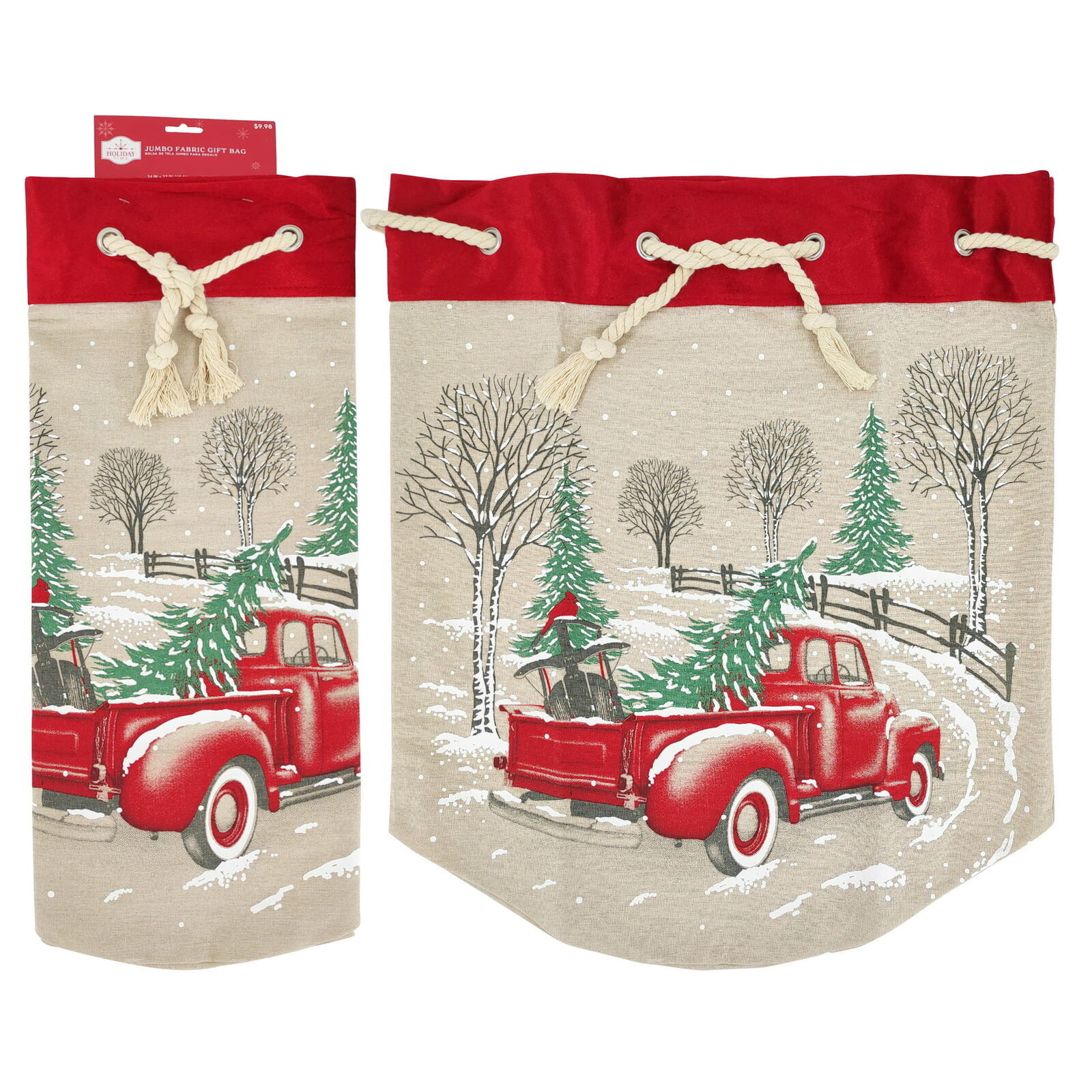 - Holiday Time Fabric Jumbo Christmas Gift Bag, Red Truck, 24"x27", 1 Count