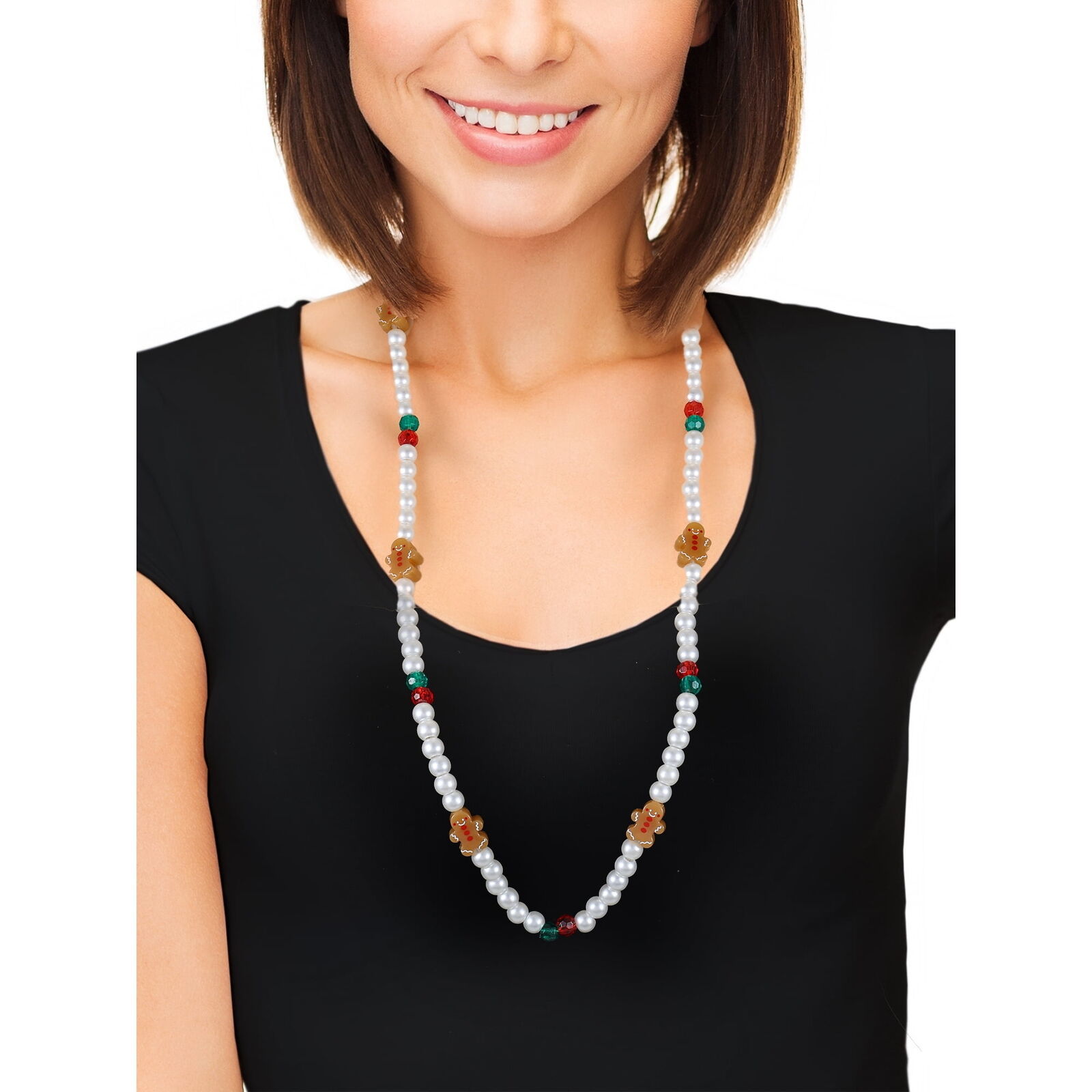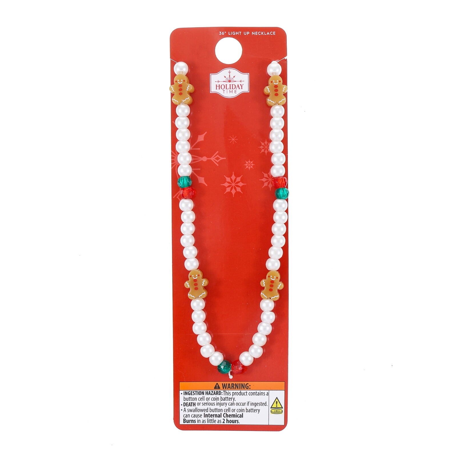 - Holiday Time Gingerbread Man Beaded Light-Up Necklace, 1 Piece