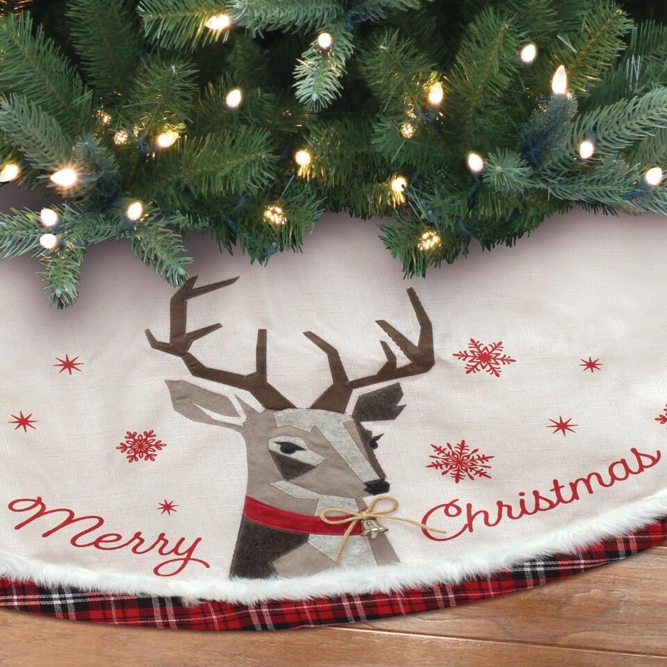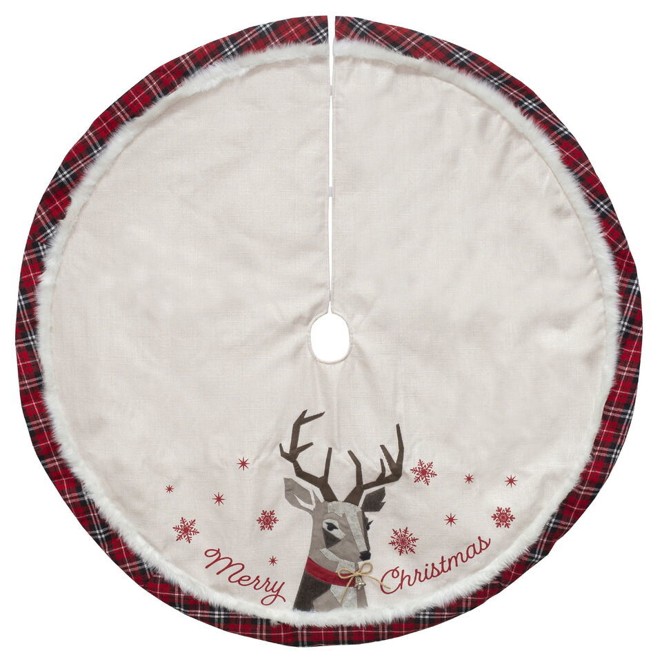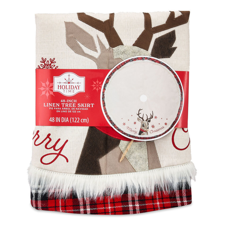 - Holiday Time Linen Geometric Deer Christmas Tree Skirt, Ivory 48"