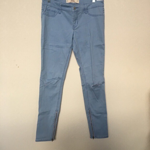 - Hollister Super Skinny Leg distressed Jeans Size 5/27 zipper at bottom