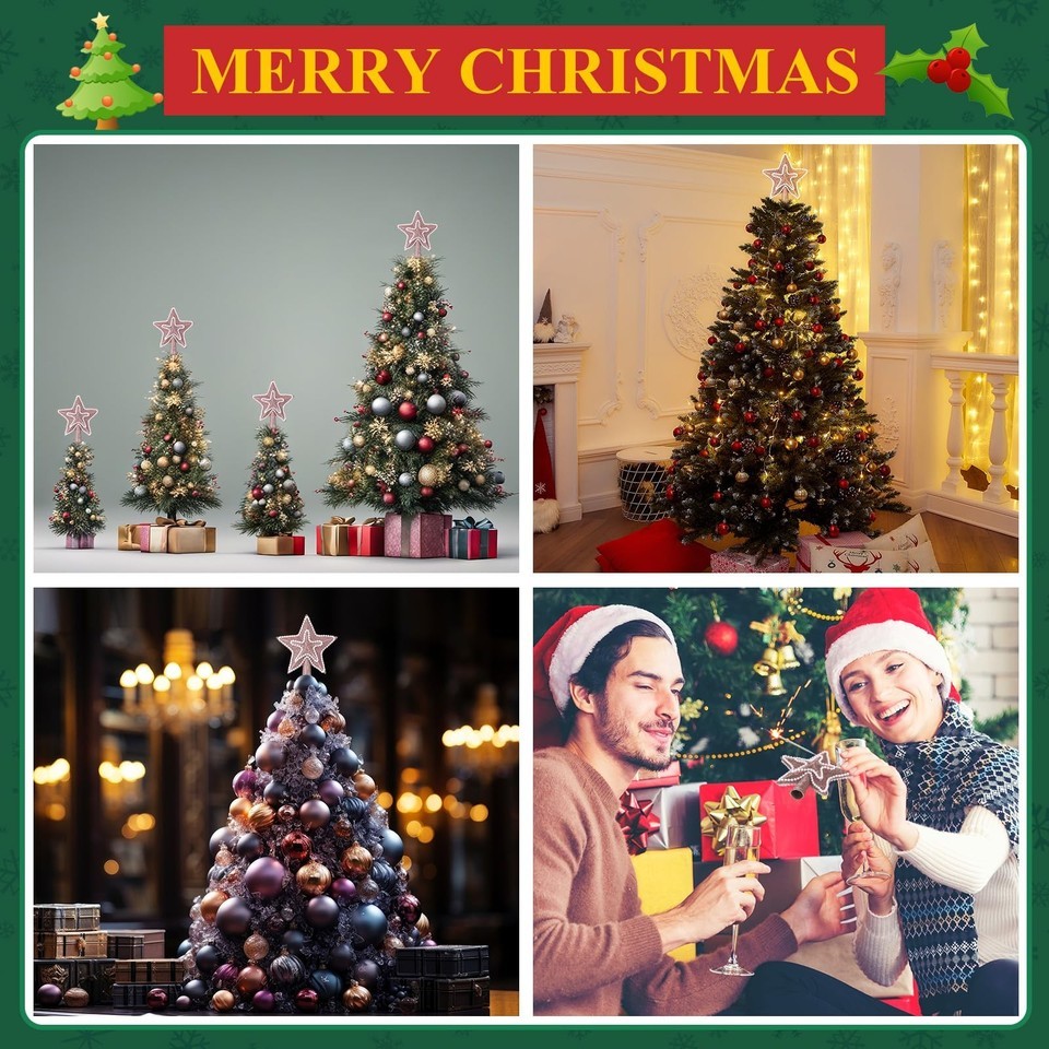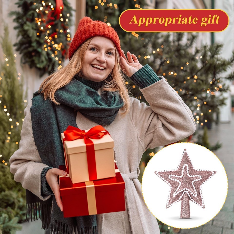 - Hollowfly Glitter Mini Star Christmas Tree Topper Rose Gold 4 Inch