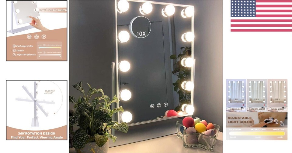 - Hollywood Style Lighted Makeup Mirror with 12 Dimmable Bulbs & 10x Magnification