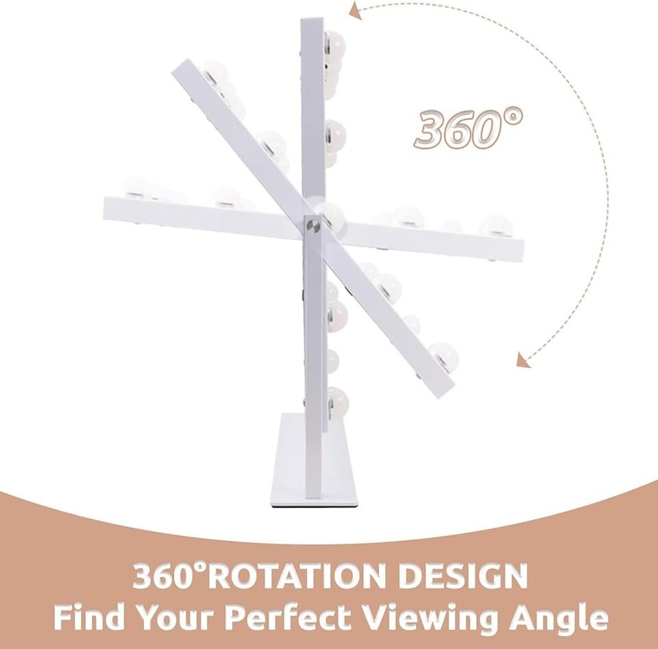 Elevate your beauty game effortlessly with the ultimate lighted makeup mirror. With its perfect size, three adjustable lighting options, and a 10x magnification feature, you?ll be able to create flawless looks easily. The 360-degree rotation allows you to achieve the most flattering angles, while the sturdy design ensures it remains secure on your vanity.