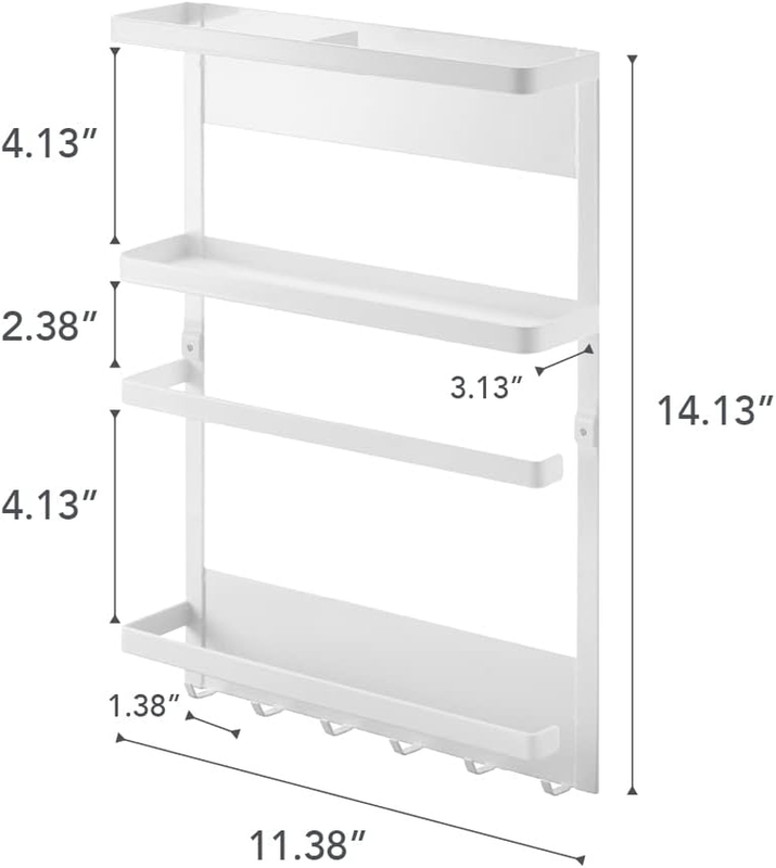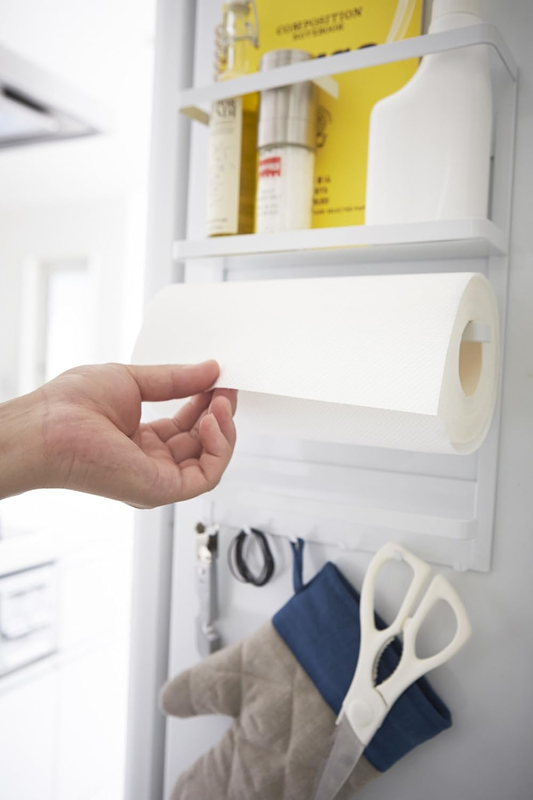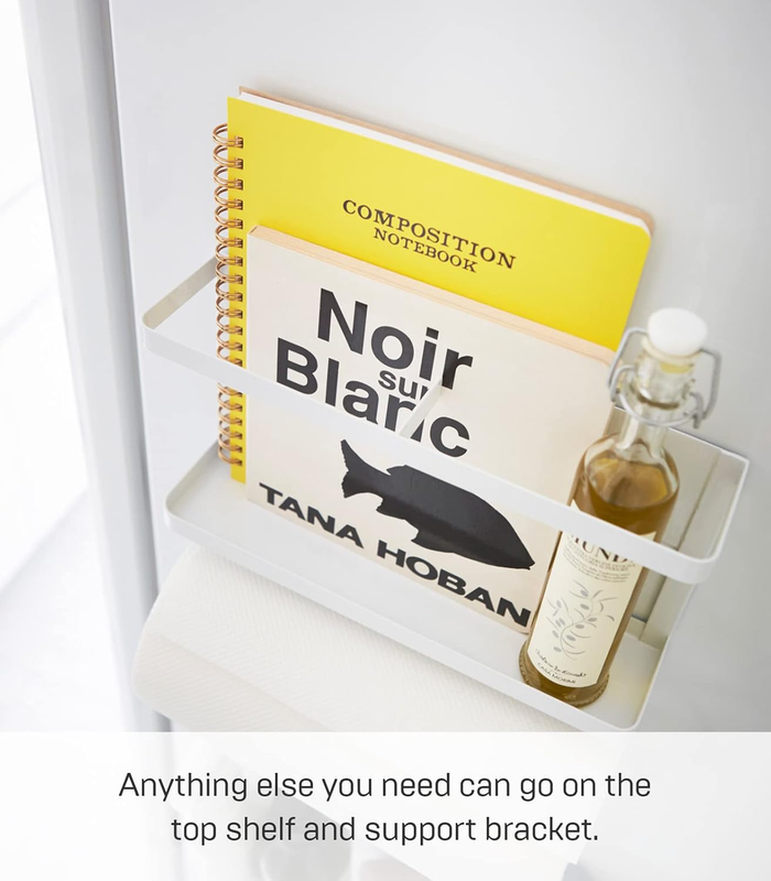 Make use of an under-utilized kitchen surface with this magnetic storage rack. Attach it to the fridge or wall-mount it to keep frequently used items out of the way and quickly accessible. Holds everything from paper towels to cookbooks.