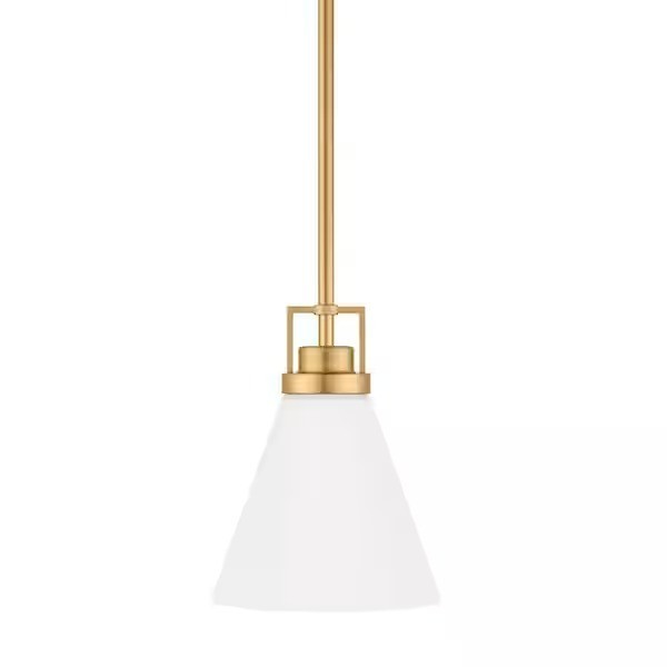 Home Decorators Clermont 1-Light Satin Brass Shaded Pendant Light Milk Glass