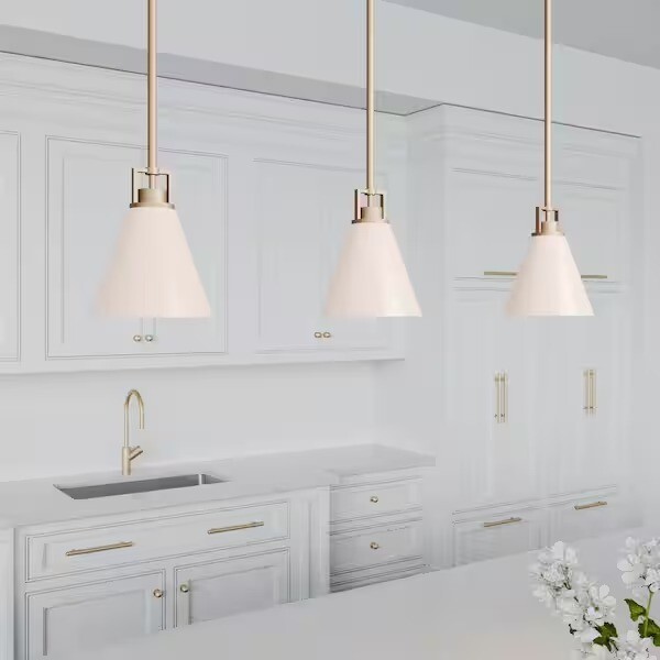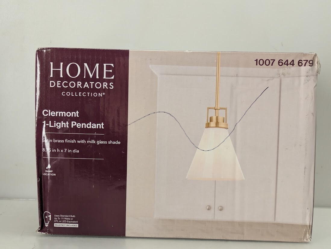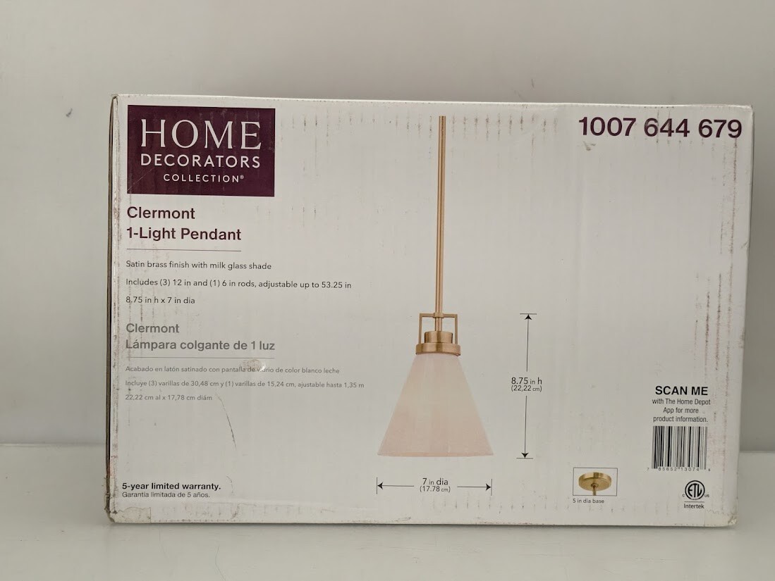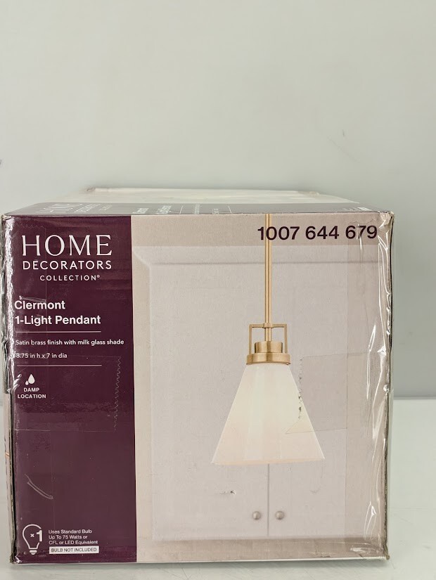- Home Decorators Clermont 1-Light Satin Brass Shaded Pendant Light Milk Glass