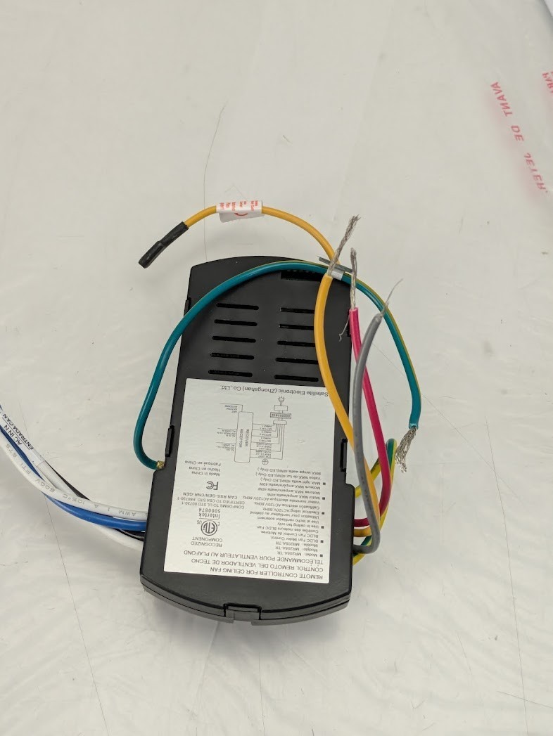 Handheld remote control operates this fan with independent light dimming and speed control