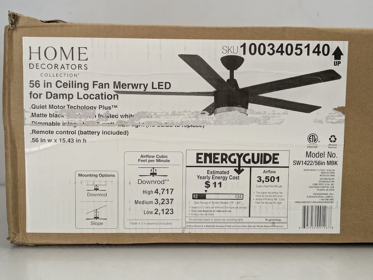 - Home Decorators Merwry 56 in. Integrated LED Indoor Matte Black Ceiling Fan