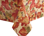 HIGH-QUALITY HOME DECOR: Made from durable 100% polyester, this farmhouse tablecloth has a white background with lovely red, yellow, and green leaves. It comes in a variety of sizes to fit your table.