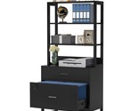 - Home Office Lockable 2 Drawer Filing Cabinet Bookshelf in Black Wood Finish