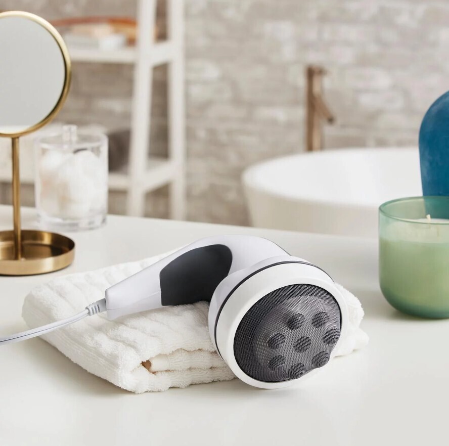 Melt away stress and stimulate blood flow with the Deep-Kneading Full Body Massager, which fits comfortably in the palm of your hand. Multidirectional rotating shiatsu massage heads hit the contours of the muscles in your neck, shoulders, back, legs, and extremities. This is a self-care tool that is great at working out tension and stiffness created by exercise, overexertion, and stress.