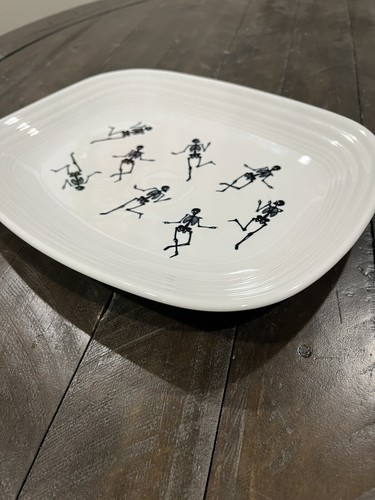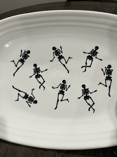 - Homer Laughlin Fiesta Trio of Skeletons Platter Rectangle 12” White Halloween