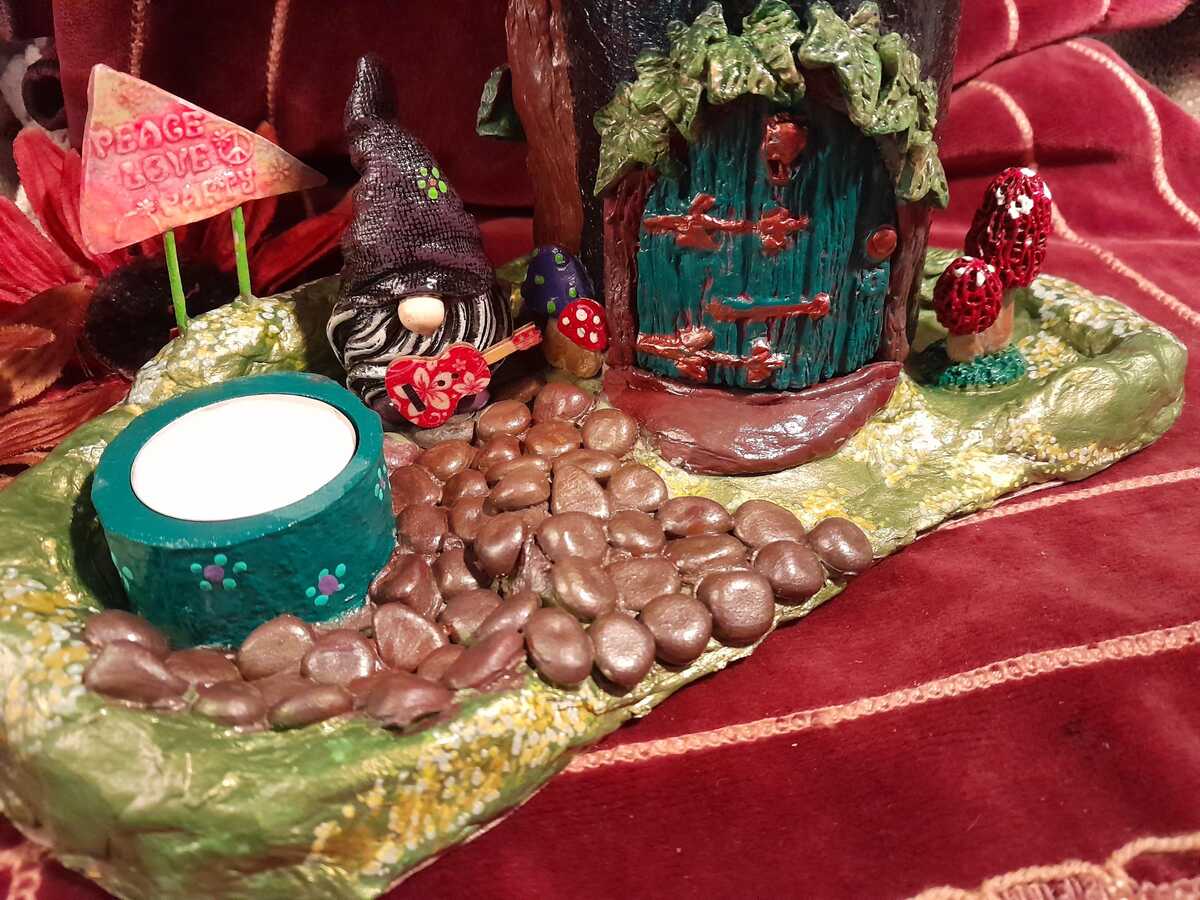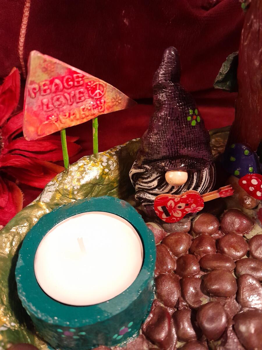 This piece is unique in all the world and there will never be another like it. Great for all sorts of decor or to give to a Hippie Gnome loving friend!