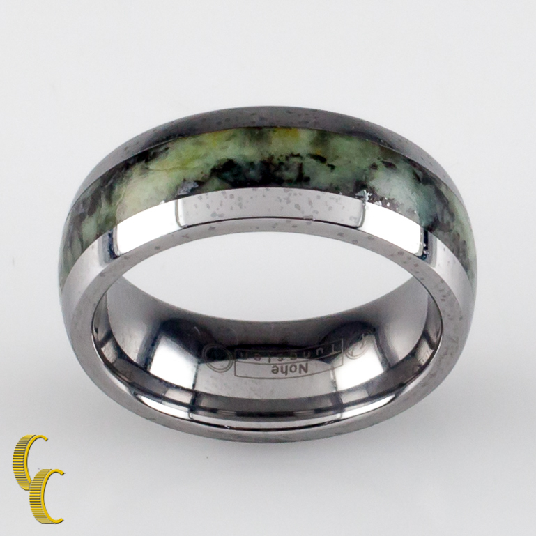 Anneau de bande en carbure de tungstene masculin avec une bande de marbre vert taille 8.25