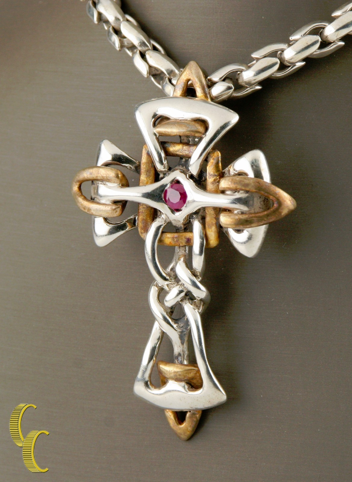 - Hommes Tigrani Argent Sterling .925 Et Bronze Rubis Pierre Croix 24 Inches Long
