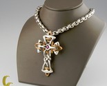 Mens Tigrani Sterling Silver .925 et Bronze Ruby Stone Cross 24 pouces de long