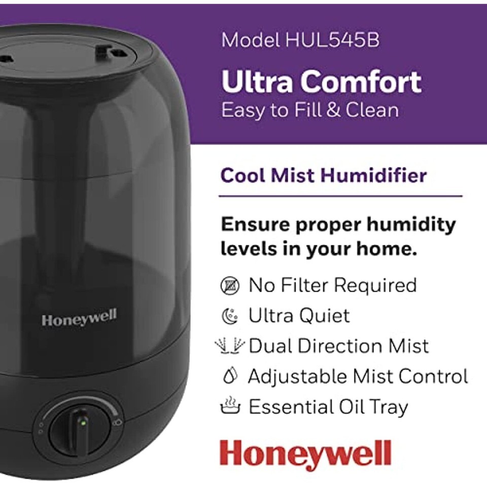 COOL MIST HUMIDIFIER ? Honeywell Ultra Comfort Cool Mist Humidifier (HUL545) helps ensure proper humidity levels in small rooms. Indoor humidity levels between 40-60% can help relieve cough/congestion, keep throat/nasal passages hydrated and more.