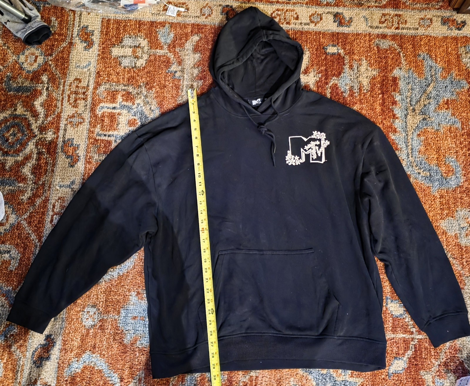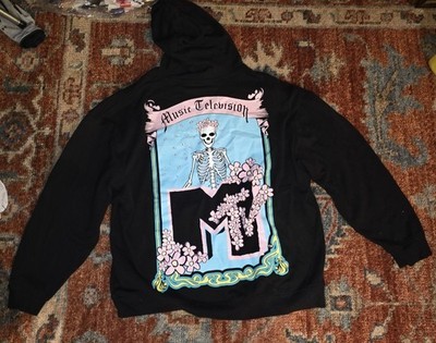 - Hoodie MTV XXL Black Hoodie Graphic Print Skeleton Flowers On Back Pink